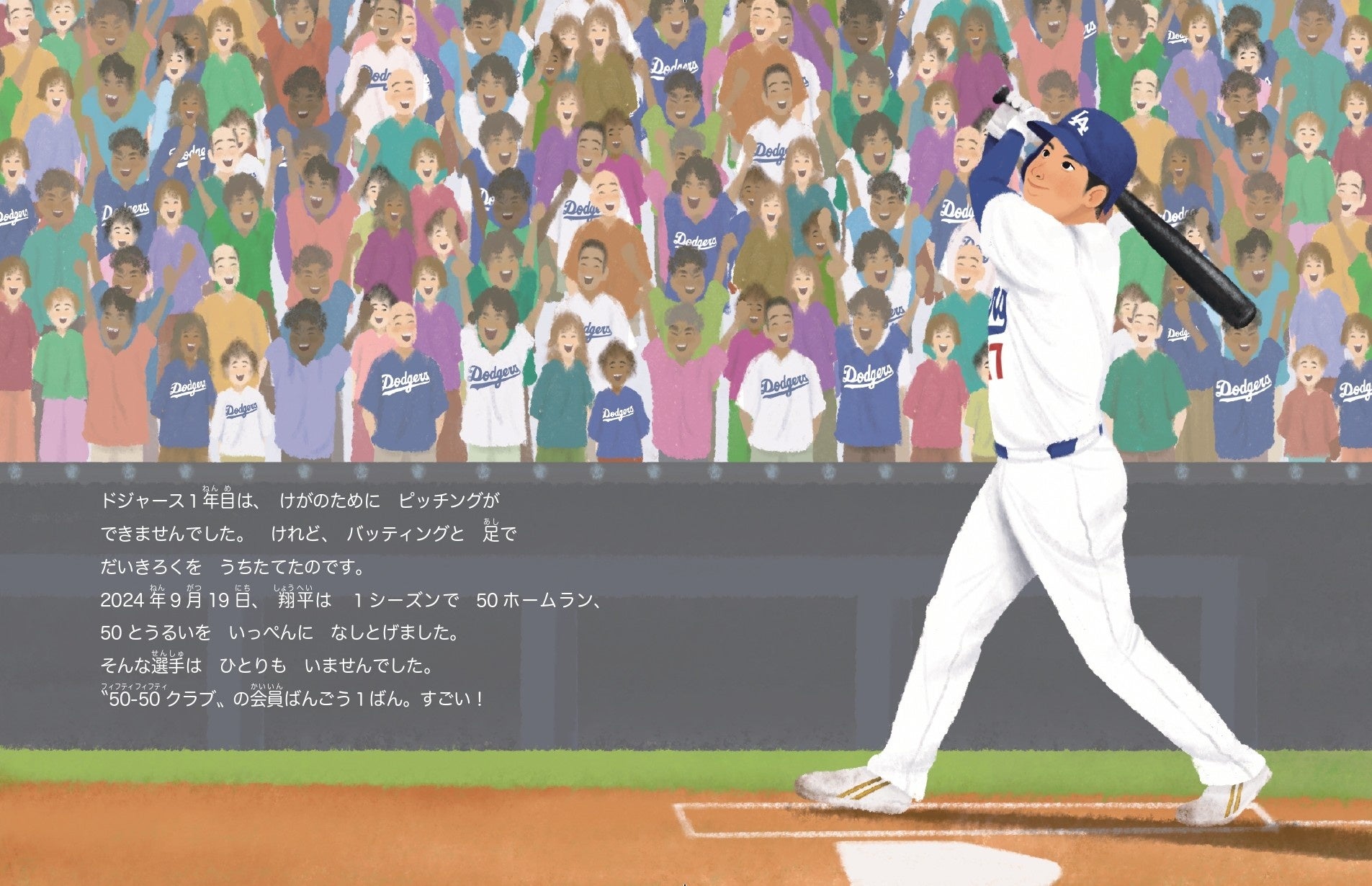 少年時代の父の教えから、花巻東高校、北海道日本ハムファイターズでの活躍、LAエンゼルスへの入団、けがからの復活。トレーニングや私生活のこと、LAドジャースで前人未到の50-50達成、デコピンの始球式、ワールドシリーズ優勝までを、やさしい文章で語っています。