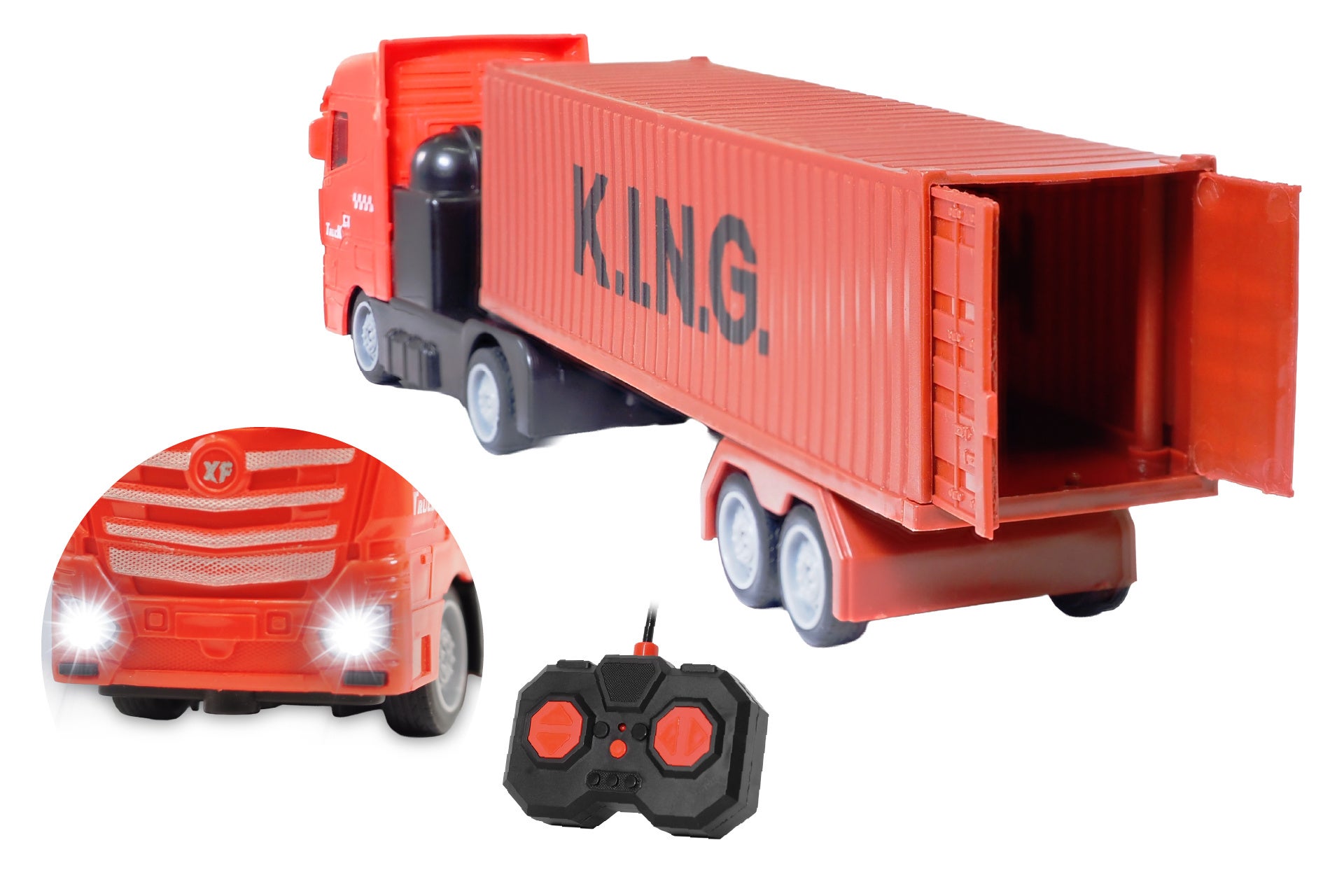 特徴:迫力のあるコンテナトレーラーをリアルに再現した、ラジコンタイプのはたらくくるま。前進・後進・左右旋回の基本操作が簡単にでき、はじめてのRCカーでも楽しく遊べます。コンテナを積んだ大型車両デザインで、前進時にヘッドライトが点灯しコンテナが手動で開閉可能!動かすだけでワクワクする臨場感を演出します。はたらくくるまが好きなお子さまへのプレゼントにもおすすめです。