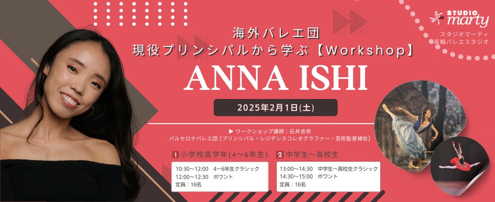 [海外バレエ団 現役プリンシパルによる特別ワークショップ] - スペイン・バルセロナバレエ団でプリンシパルとして活躍する「石井杏奈」さんによる特別ワークショップが開催されます!