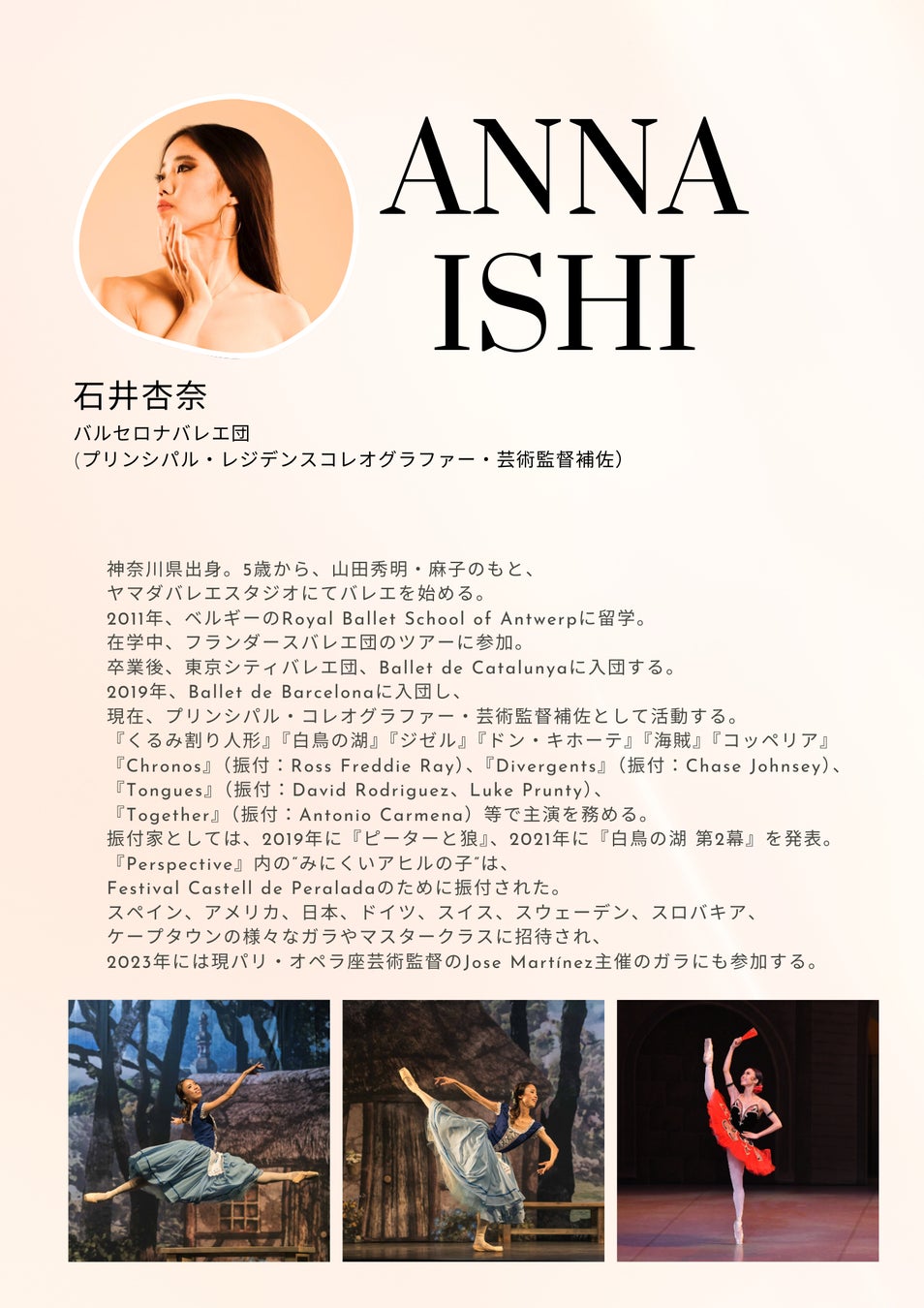 また当日は、石井杏奈さんが直接質問にも応じてくださいますので、バレエのレッスンやその他、バレエ団・海外事情など、お気軽にご質問ください。