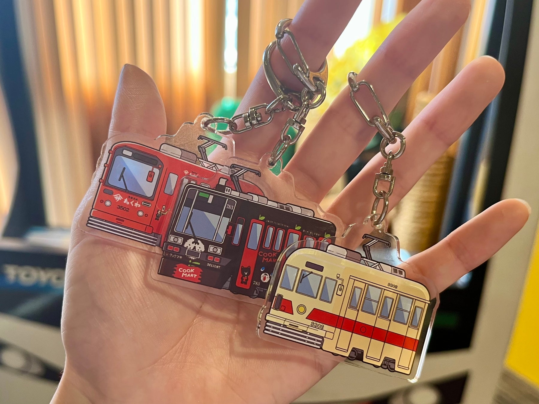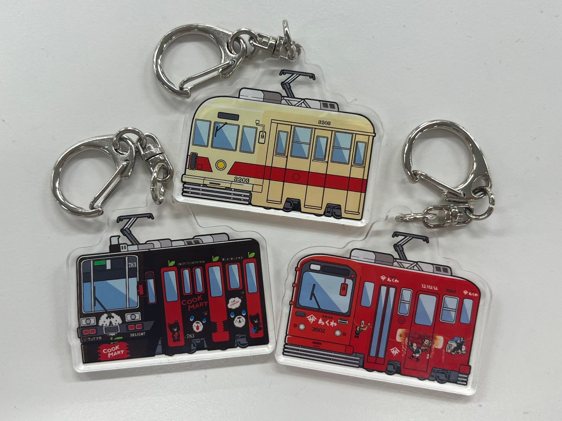 内容:「783号(クックマート)」「3502号(ヤマサちくわ)」「3203号」をデザインしたアクリルキーホルダー