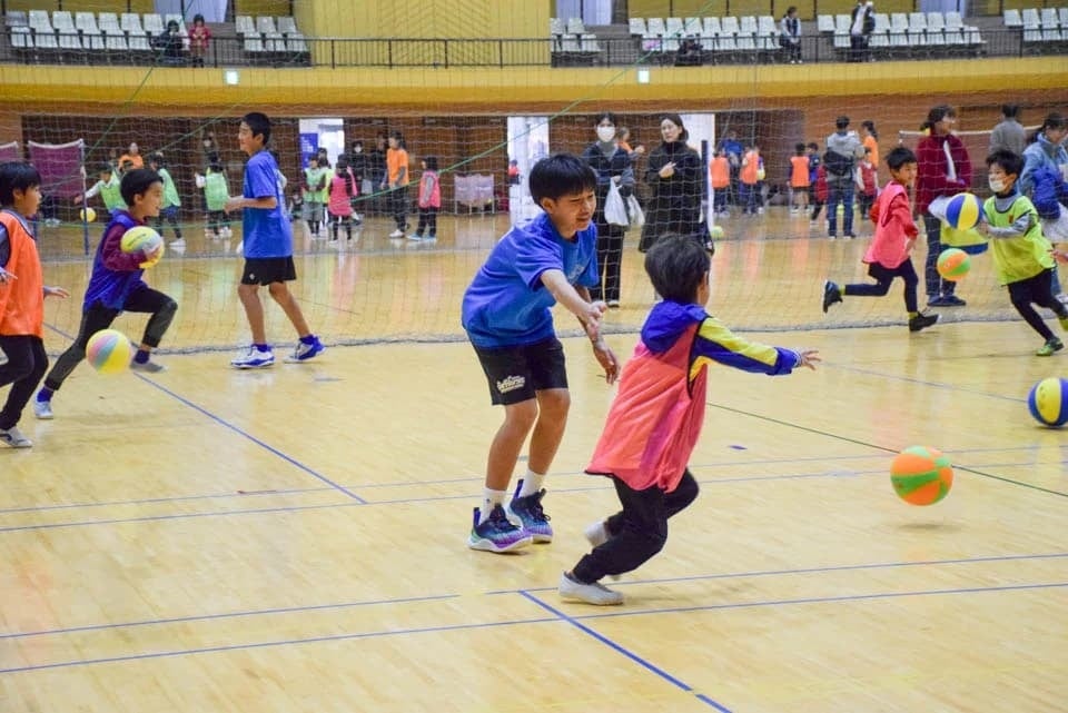 参加者の皆さんには、バスケットボールを含む3つの種目(サッカー・バレーボール)をローテーションにて体験いただきました。