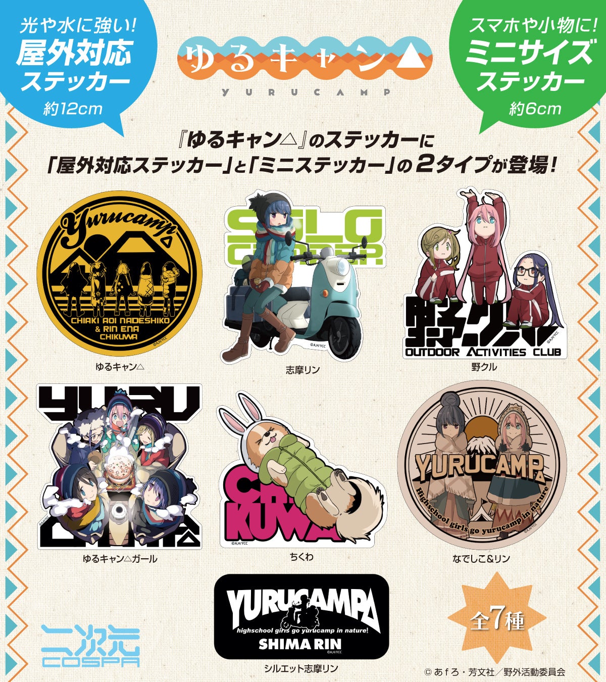 ミニサイズの『ゆるキャン△』ミニステッカー