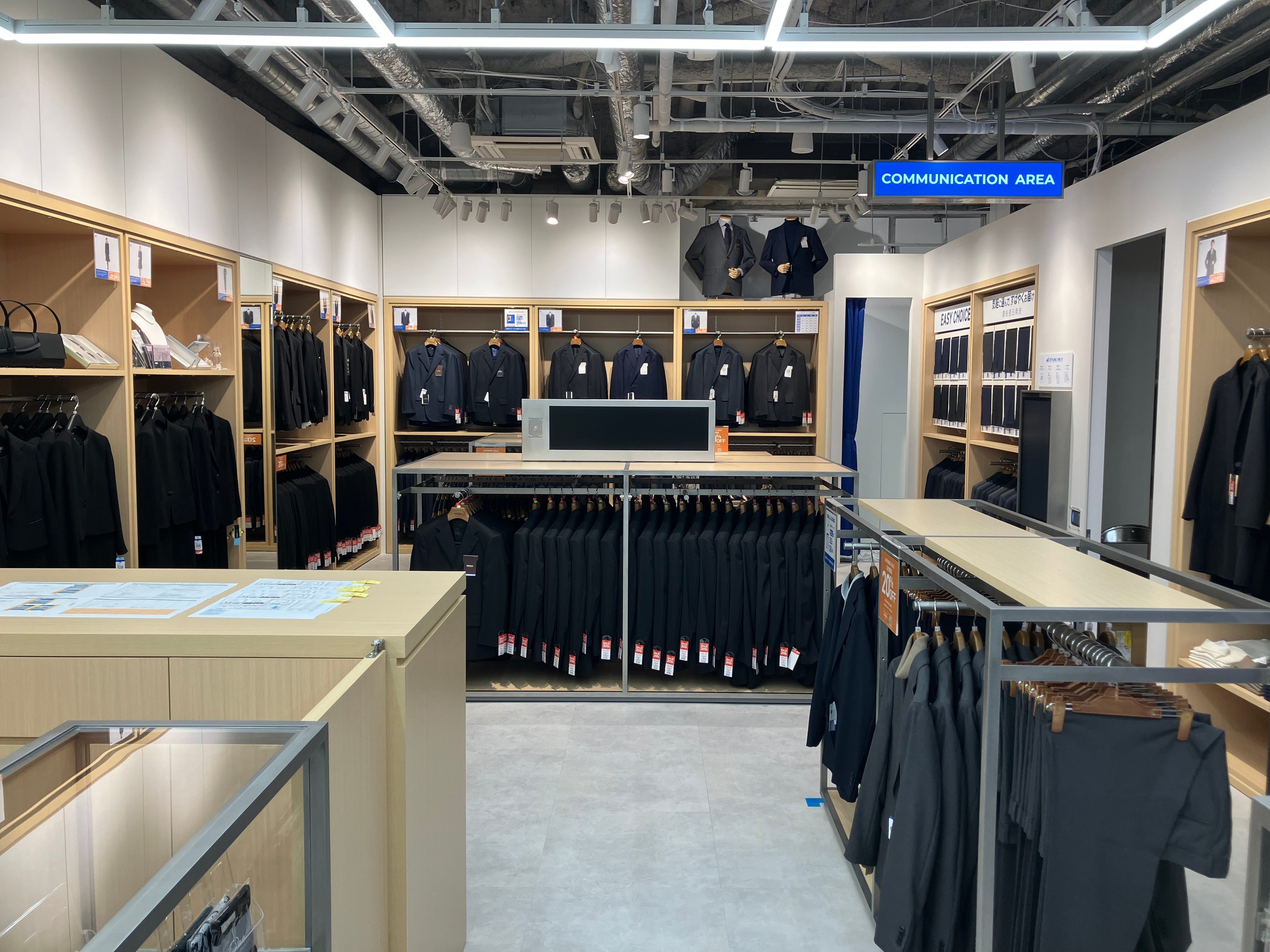 デジタル採寸やAIを活用したビジネスウエア診断ができるサイネージなど、これまでの既存の「洋服の青山」にはない新たなコンセプト店舗です。
