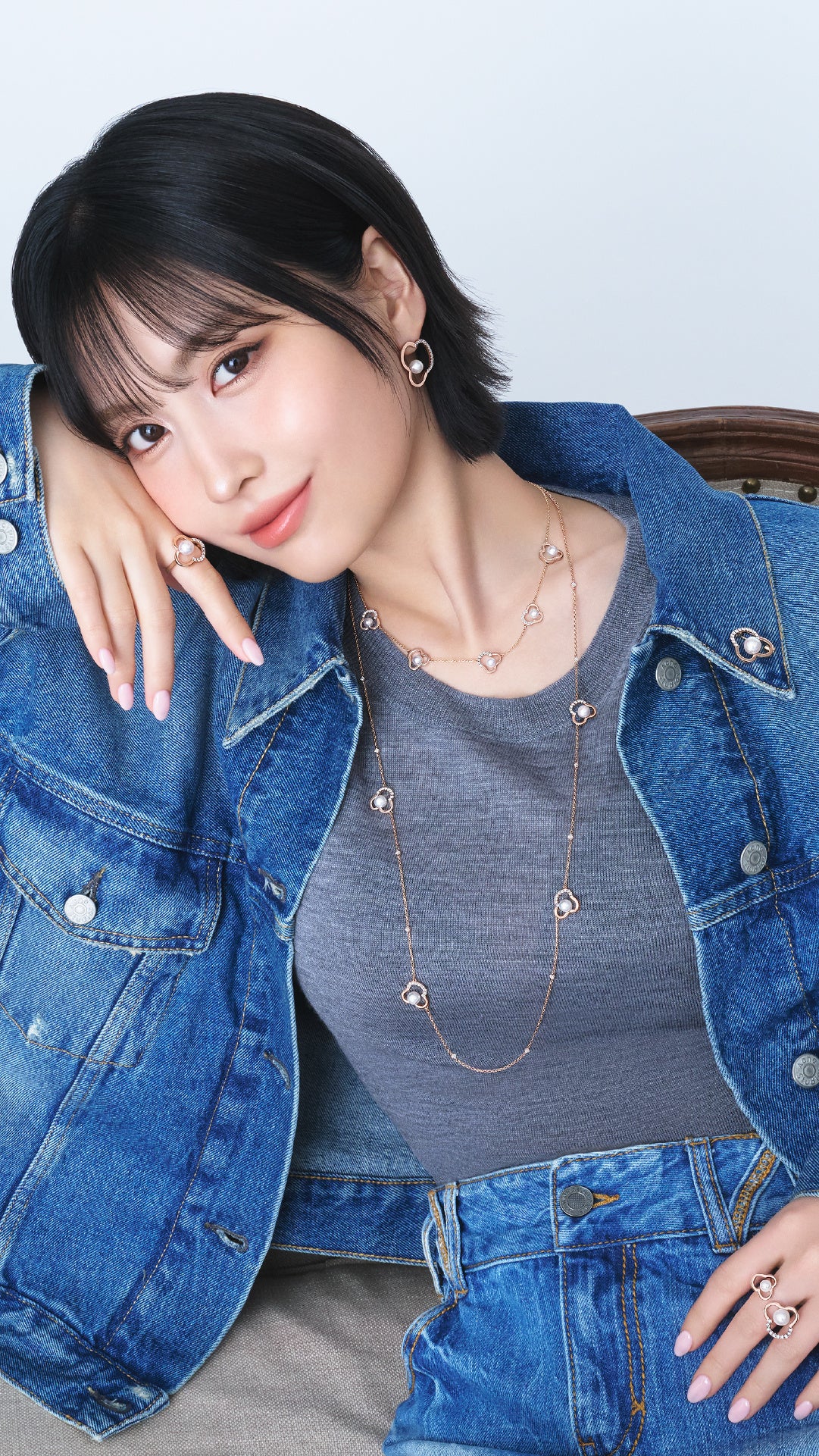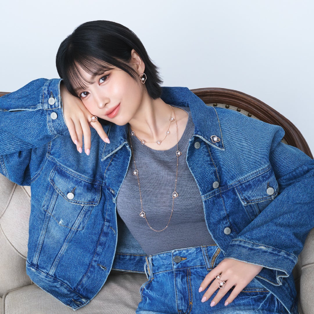 今回公開された3ビジュアルでMOMOが纏うのは、7月2日より全国で発売される「チャンツ」の新作コレクション。可憐な花々をモチーフに、瑞々しいパールと煌めくダイヤモンドをあしらったデザインが、MOMOの持つ透明感としなやかさに美しく調和し、唯一無二の輝きを放ちます。