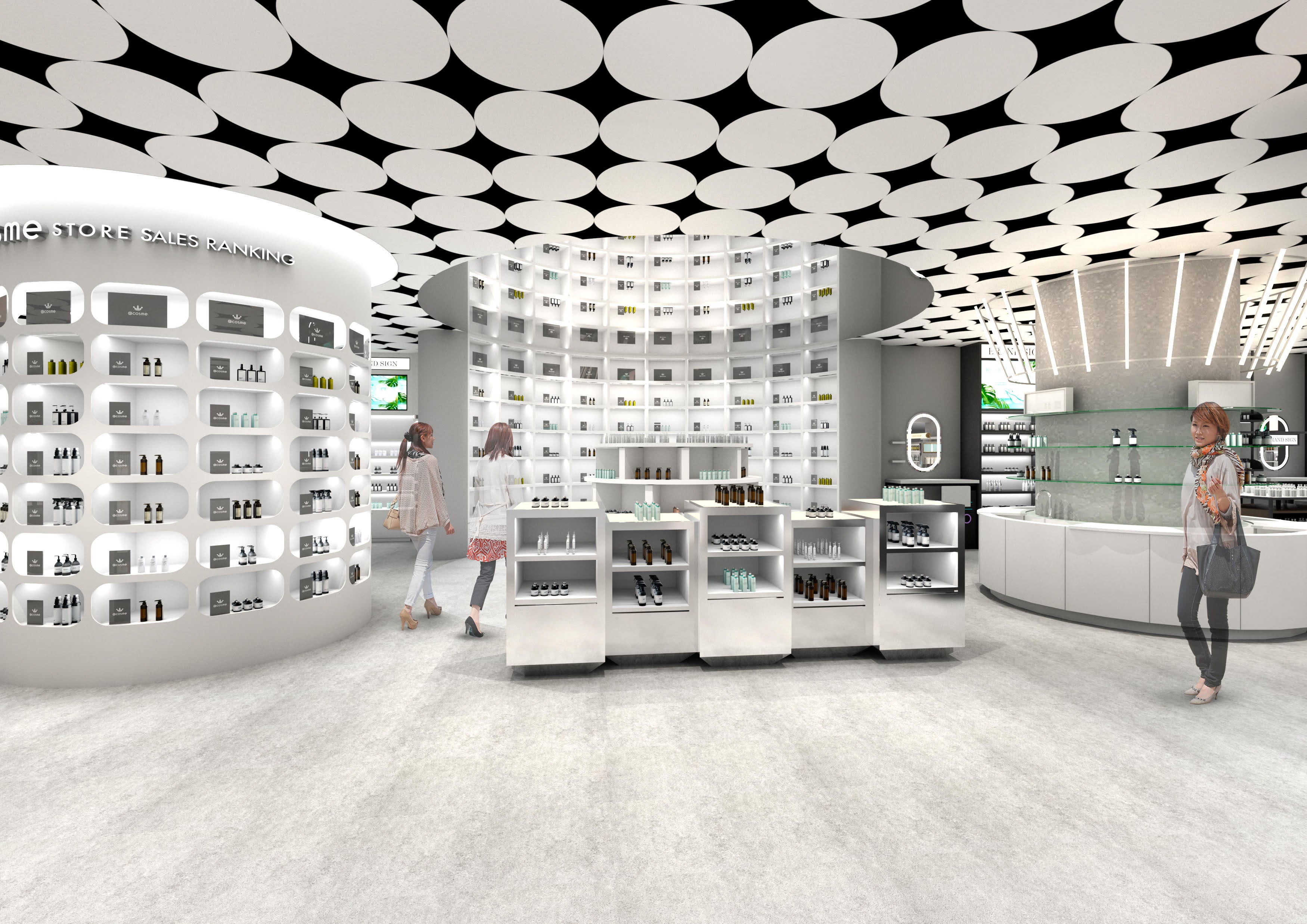 店内は、一つ一つのブランドが引き立つシンプルで質感の高い店舗内装を取り入れ、メイク・スキンケアそれぞれのセールスランキングタワー、季節やトレンドに合わせたテーマで商品を展開する編集企画棚などに加え、フラッグシップショップである@cosme TOKYOや@cosme OSAKAで好評いただいている、歴代から最新の受賞商品まで陳列する「べスコスコーナー」を店内奥中央に大きく設置。また、鏡の設置数を既存店から更に充実させ、広々としたウォータースペースを用意するなどこれまで以上に「試しやすい」環境を整えました。その他、@cosmeでのクチコミ評価や手書きポップによる商品説明、美容部員によるカウンセリングなど、運命コスメに出会えるさまざまな仕掛けを随所に設けています。さらに、これから流行りそうな気鋭のブランドや新たに誕生するニューフェイスブランドとの「出会い」を生み出すNEXT TRENDゾーンも展開。いつ来店しても新鮮な出会いがある店づくりをおこないます。取り扱いブランドも「RMK」、「KANEBO」、「クレ・ド・ポー ボーテ」、「NARS」、「ルナソル」をはじめとするラグジュアリーブランドから、話題の韓国コスメまで、百貨店、専門店、通販からドラッグ・バラエティショップなどの流通チャネルを横断した幅広いブランドラインナップを実現しました。