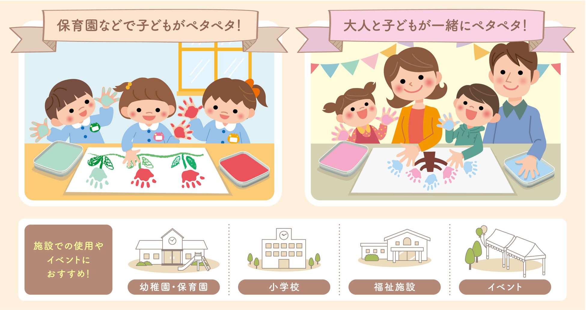 「パームカラーズ」は、2019年3月に発売したお子さまの成長記録をかわいく、キレイに残せる手形スタンプパッドです。肌にやさしくお子さまにも安心なインキを使用しており、使用後は水洗いや濡れたティッシュなどで簡単に洗い落とすことができます。また、耐水性・耐光性にも優れており、色褪せしにくく長期保存する作品づくりにも最適です。