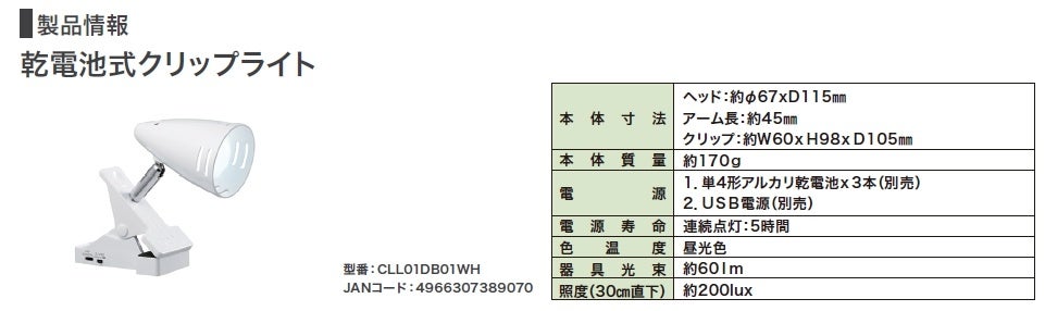乾電池式クリップライトを発売。