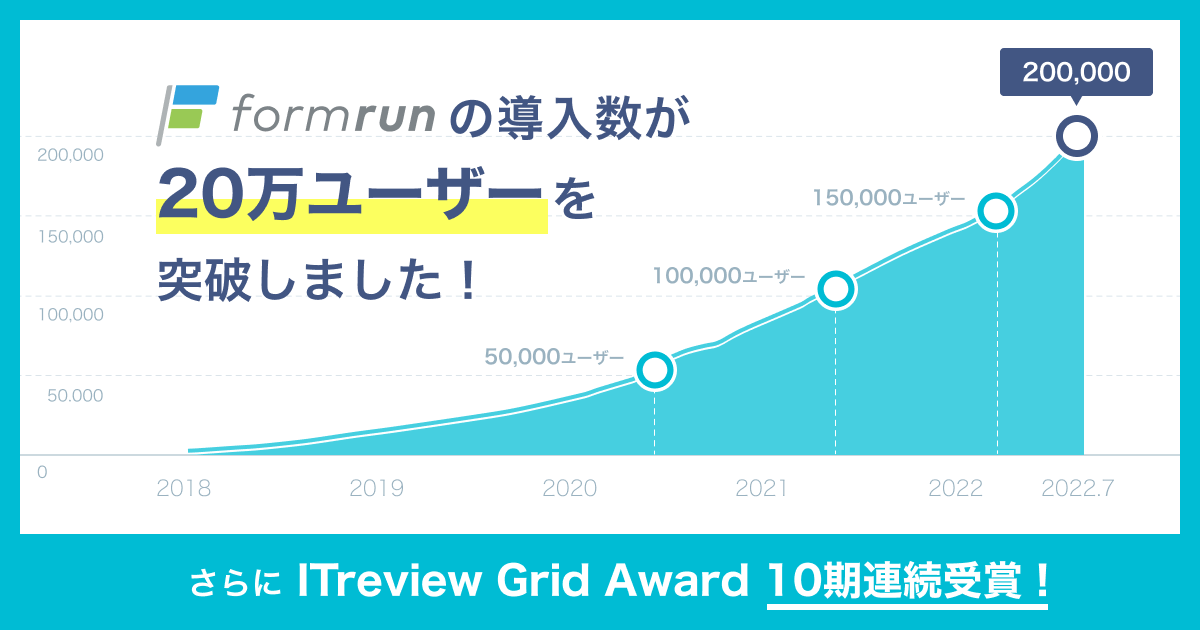 フォーム作成管理ツール「formrun(フォームラン)」、累計20万ユーザーを突破!ユーザーからも評価され「ITreview Grid Award」を10期連続受賞