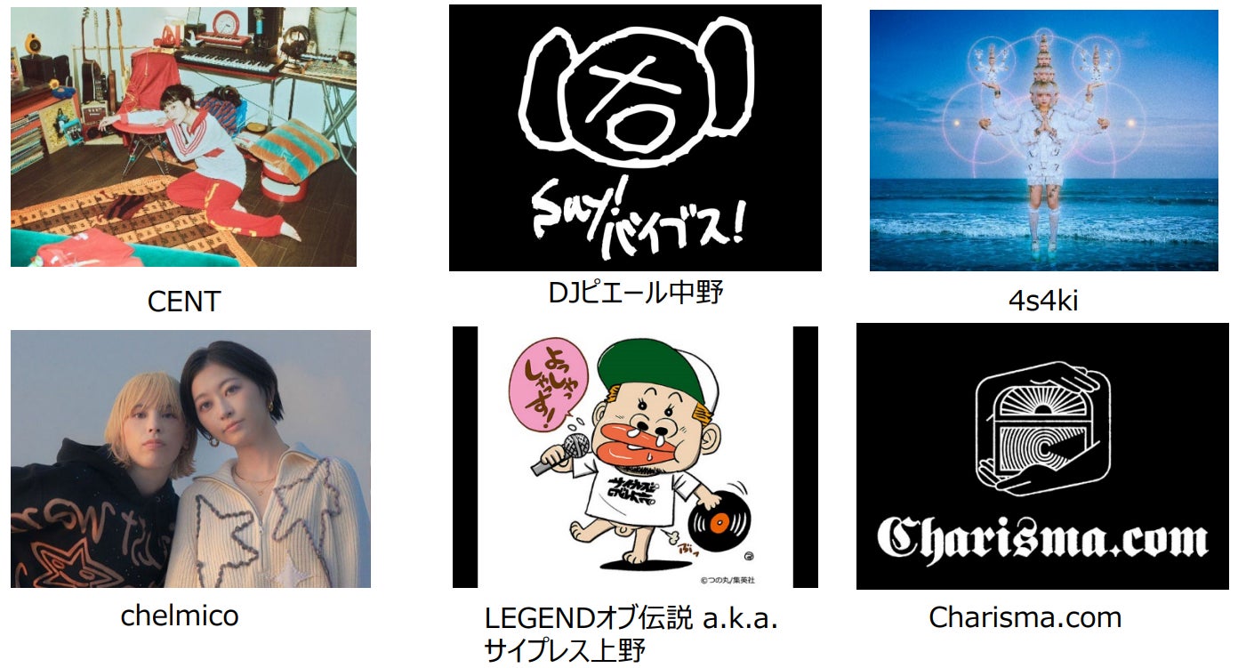 ・MAIN STAGE:スチャダラパー、PKCZ®︎、DJピエール中野、パソコン音楽クラブ、LEGENDオブ伝説 a.k.a. サイプレス上野、DJ To-i(from DISH//)、佐野文哉(OWV)、JUN INAGAWA、セク山、DJ Hello Kitty、DJ クロミ