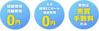 初期費用や大手越境ECモールとの連携費を無料でご提供。売買手数料(10%)と月額費用だけで越境ECを始めることができます。