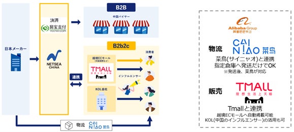 さらに、同じくアリババグループが運営する中国最大のBtoC向けECモール「Tmall Global(天猫国際)」とも連携し、日本サプライヤーはNETSEA CHINAに出品するだけで、同時にTmall Globalへの出品もかないます。
