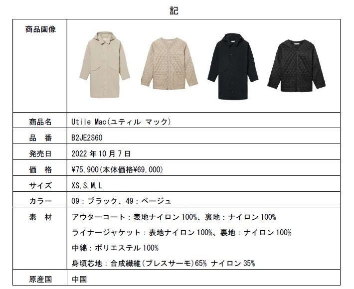 “A.P.C.”(アー・ペー・セー)と初のコラボレーション 吸湿発熱素材『ブレスサーモ』採用のライナー付きコート発売