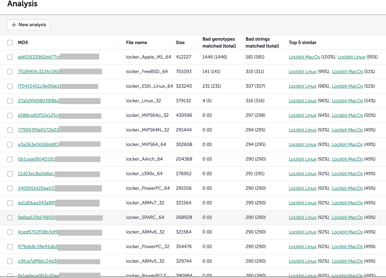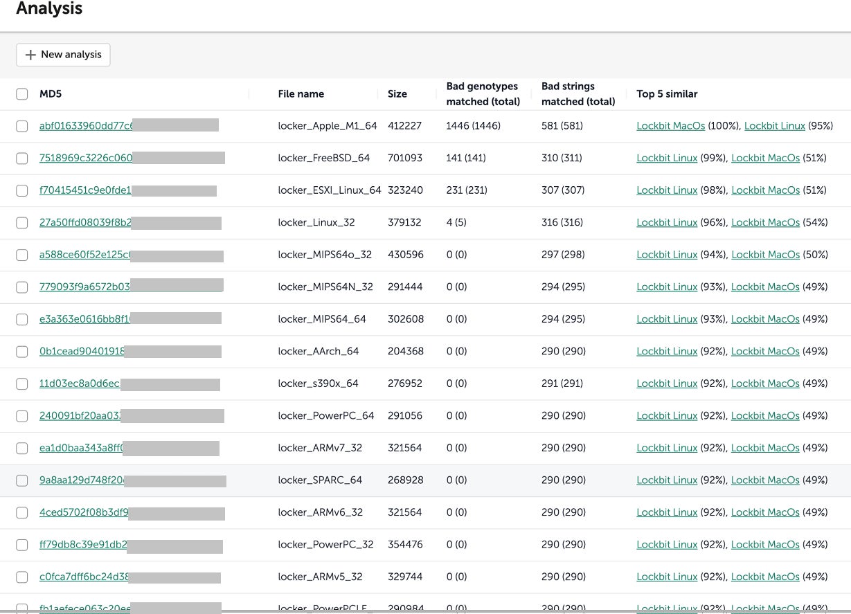 今回の画期的な発見として、GReATのリサーチャーは、Mac用Apple M1、ARM v6、ARM v7、FreeBSDほか複数のアーキテクチャ向けに作られたLockBitのサンプルが含まれるZipファイルを見つけました。「Kaspersky Threat Attribution Engine」を用いた詳細な解析と調査により、これらのサンプルは、以前に観測されたLockBitのLinux/ESXiバージョンに由来することが確認されました。