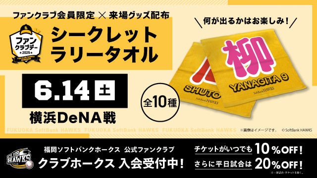 6月14日(土)はホークス公式ファンクラブ「クラブホークス」会員の入場者様に来場グッズを配布するファンクラブデーを開催!