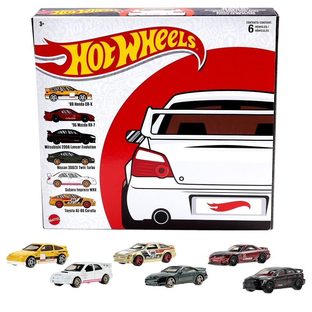 世界No.1のミニカーブランドHot Wheelsからチューニングカー仕立ての日本車6台を組み合わせたマルチパックが新登場!