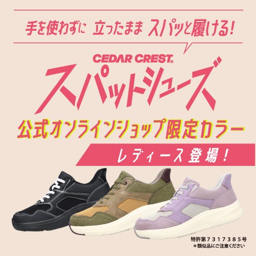 手を使わずに立ったままスパッと履ける!大好評のセダークレスト「スパットシューズ」レディースモデルに、EC限定カラーが新発売。