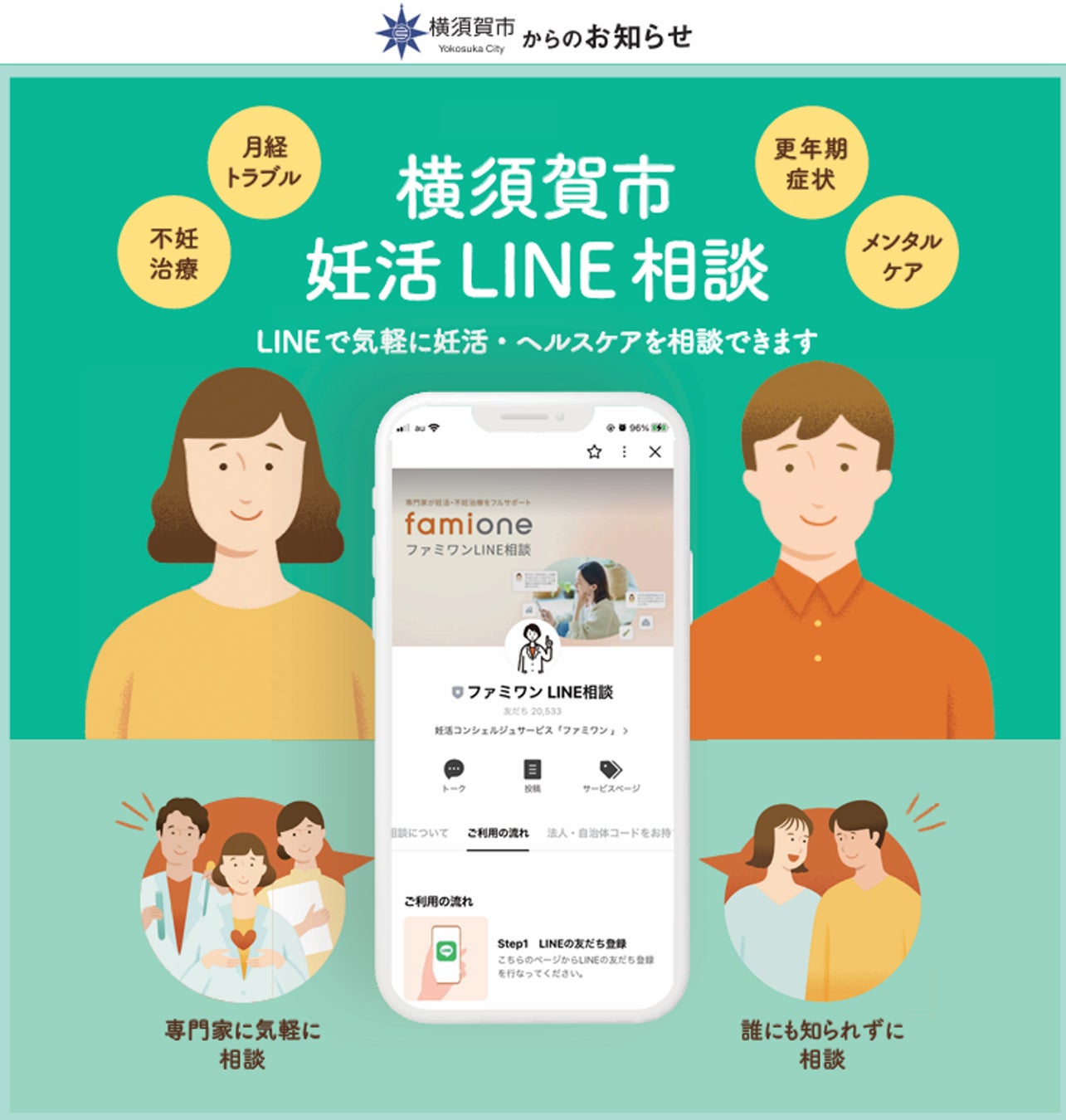 神奈川県横須賀市の『妊活LINEサポート事業』として、妊活コンシェルジュ「ファミワン」のサービス提供を今年度も継続へ