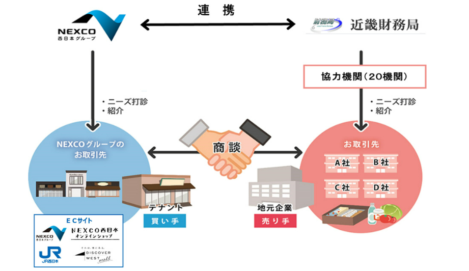 この商談会では、売り手側の関西地区のメーカー様や生産者様と、買い手側の高速道路サービスエリア(SA)、パーキングエリア(PA)のテナント事業者やNEXCO西日本グループ各社を繋ぐほか、今回新たにJR西日本のオンラインショップが初参加することで、「関西交通ネットワーク大商談会」としてスケールアップして商談会を開催いたします。