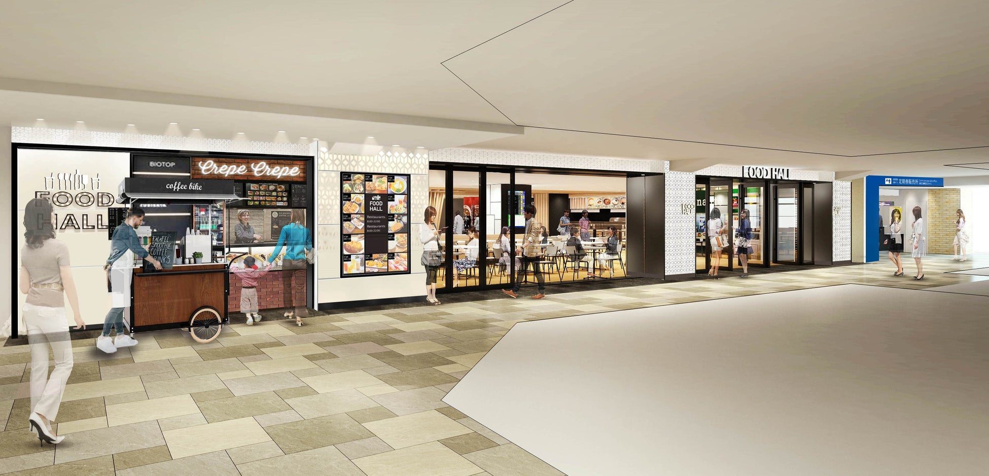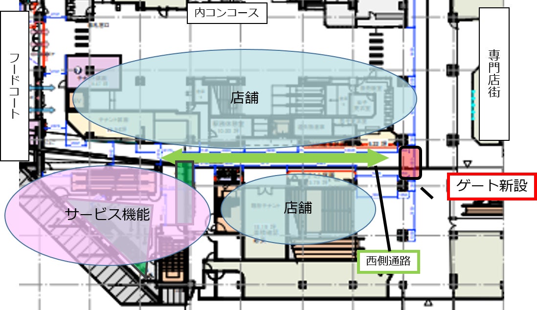 2階専門店街とフードコートを繋ぐ西側通路には、ATMコーナーやピックアップロッカーなどを設置するほか、テイクアウトに特化した店舗を誘致するなど、アフターコロナの消費者ニーズの変化をとらえた駅ならではのサービス機能を充実させます。