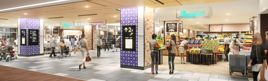 1階にある「にしてつストア久留米タミー店」は、2022年12月から仮設店舗営業を行い、2024年3月にリニューアルオープン予定です。また、にしてつストア入口付近には、スーパーと相性のよい食物販、総菜店舗区画を新たに設け、2024年9月に魅力的な食物販・飲食ゾーンとして生まれ変わります。