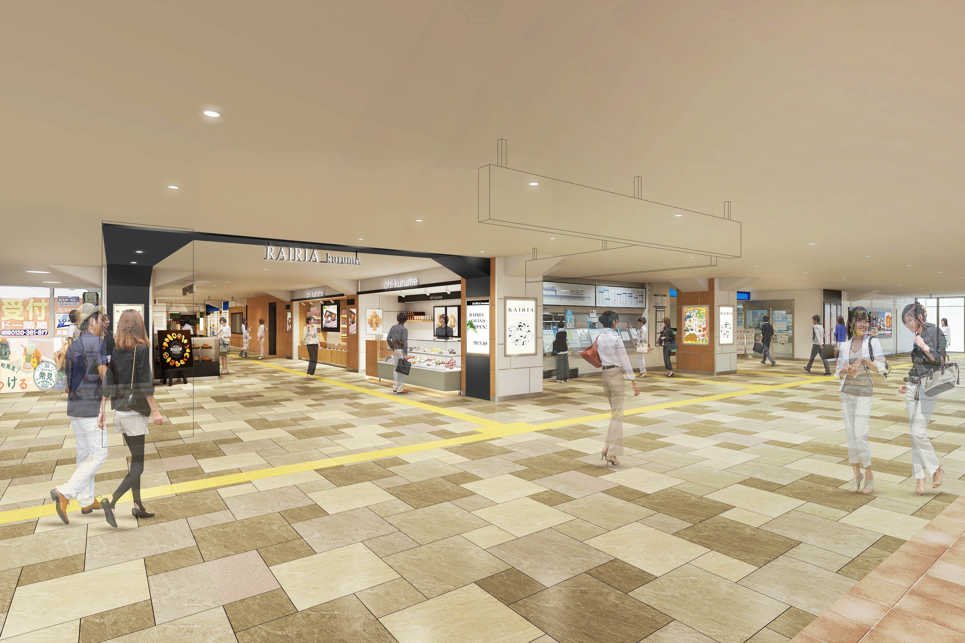 一方、天神大牟田線では、大規模地震への安全対策として2006年より耐震補強工事を行っております。西鉄久留米駅については2019年より耐震補強工事を行っておりますが、この度、”行き交う人がちょっと一息つける、街の中のオアシス空間”をコンセプトに商業施設をリニューアルすることで安全・安心な駅づくりを行うとともに、駅やバスセンターの利便性を向上させ、更なる街の活性化や賑わい創出に貢献いたします。