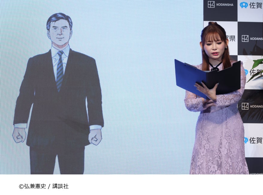 就任式最後には、今回のプロジェクトのために弘兼憲史さん監修のオリジナルマンガ「副知事 島耕作」をお披露目。中川さんと島副知事による公開生朗読を実施しました。実際にオリジナルマンガを朗読した中川さんは「作者の前で読みなんてカオスすぎます!」としながらも「島さんと一緒に朗読することができて本当に幸せです」とコメント。実際に聞いた山口知事は「この漫画の続きがますます読みたくなりました」と発言し、会場を盛り上げました。