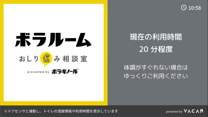 全国のオフィス・商業施設を中心に約12,000箇所で展開するトイレ広告メディア「アンベール」を運営する株式会社バカン(本社:東京都千代田区、代表取締役:河野剛進、以下「バカン」)は、ボラギノール®ブランド等を展開する天藤製薬株式会社(本社:大阪府豊中市、代表取締役社長:宮﨑尚志、以下「天藤製薬」)との連携により、おしりの悩みに関する情報を届ける相談コンテンツ「ボラルーム おしり悩み相談室」の年間コンテンツ配信を2024年12月2日(月)より開始したことをお知らせいたします。