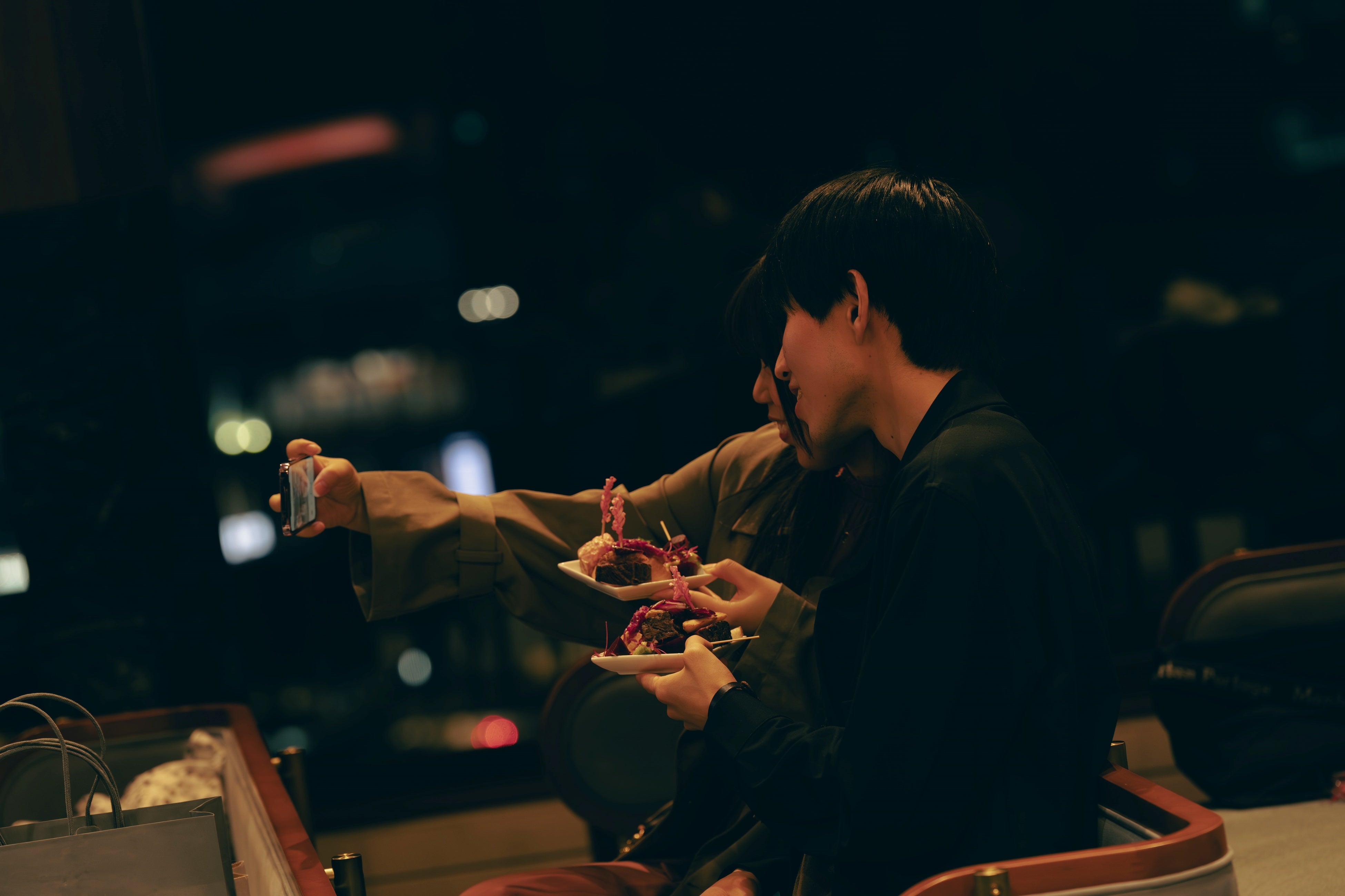 今回「日常と結婚式との距離を近づけるアイデア」を考えるにあたり、私たちはまず、同世代の方々に結婚のイメージに関するアンケートを実施しました。その結果、結婚は同世代の方々にとって「重い」というイメージを持たれていることがわかりました。そこで、結婚式を行う会場やホテルに、日常的に気軽に訪れる機会を作ることで「結婚」や「結婚式」のハードルを下げられるのではないか?という仮説を立て、結婚式場で映像作品を鑑賞したり、その映像作品にまつわる食事を提供したりする企画を提案しました。今回、実際にシアターになったのは、夜景が見えて雰囲気も良い結婚式場です。会場自体はもちろん、イベントオリジナルのフードやドリンクからも、会場の魅力を伝えることができたのではないかと思います。