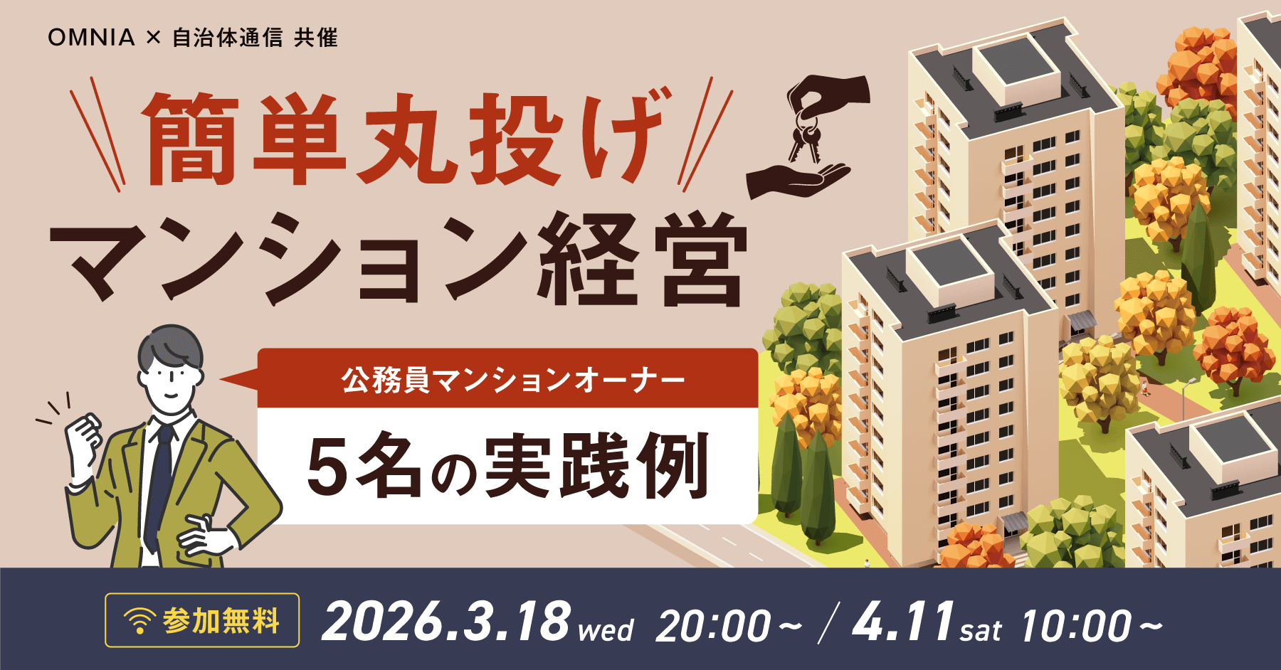 【2026年3月/4月開催決定!参加者募集中】OMNIA×自治体通信 共催セミナー「簡単丸投げマンション経営~公務員マンションオーナー5名の実例紹介~」