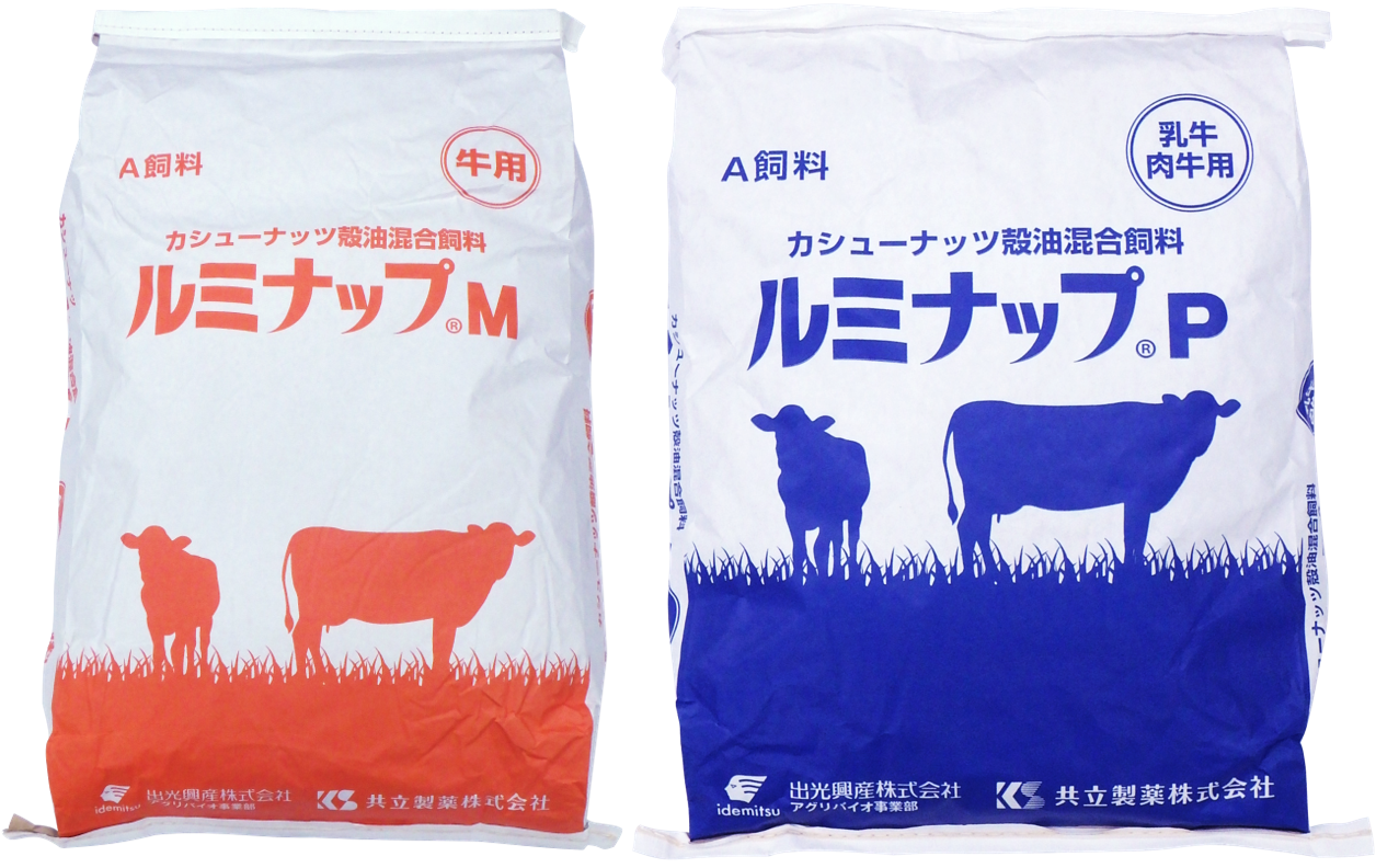 当社は、本事業において牛のゲップ中メタンを抑える働きのある天然素材「カシューナッツ殻液」を配合した混合飼料(ルミナップ®)を提供し、生産現場での牛のゲップ中メタン削減量の実測に協力します。