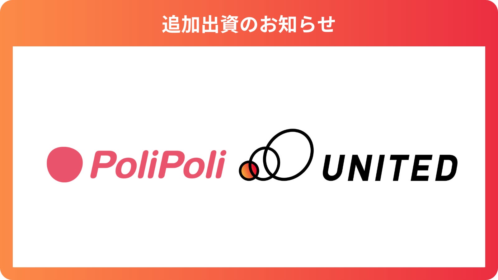 ユナイテッド株式会社(本社:東京都渋谷区、代表取締役社長 兼 執行役員:早川 与規、証券コード:2497、以下「ユナイテッド」)は、株式会社PoliPoli(所在地:東京都千代田区、代表取締役:伊藤 和真、以下「PoliPoli」)へ出資いたしました。2019年1月の初回出資に続いて追加での出資となります。