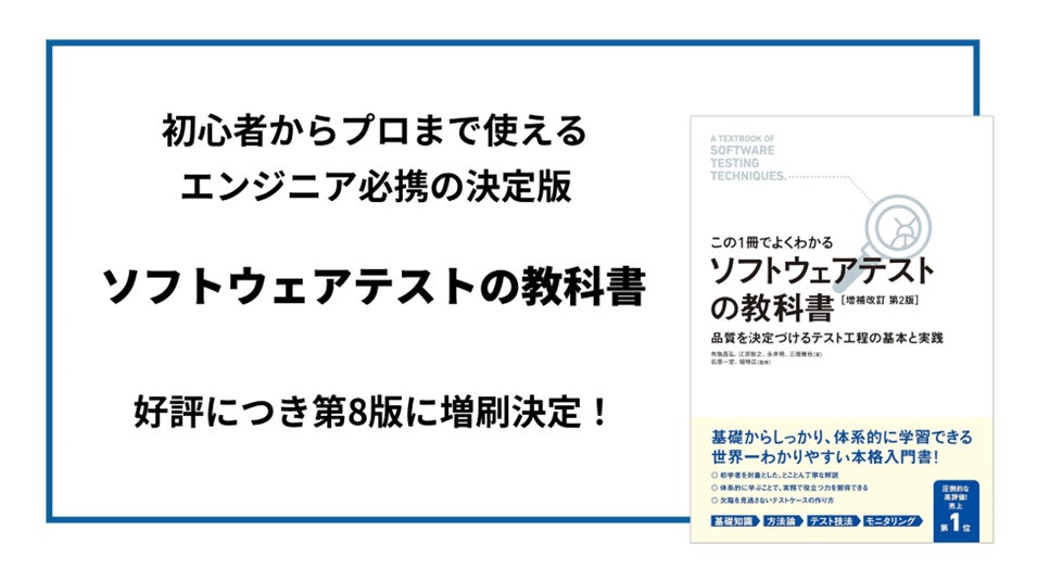 【バルテス】初心者からプロまで使えるエンジニア必携の決定版『ソフトウェアテストの教科書』が好評につき第8版に増刷決定!