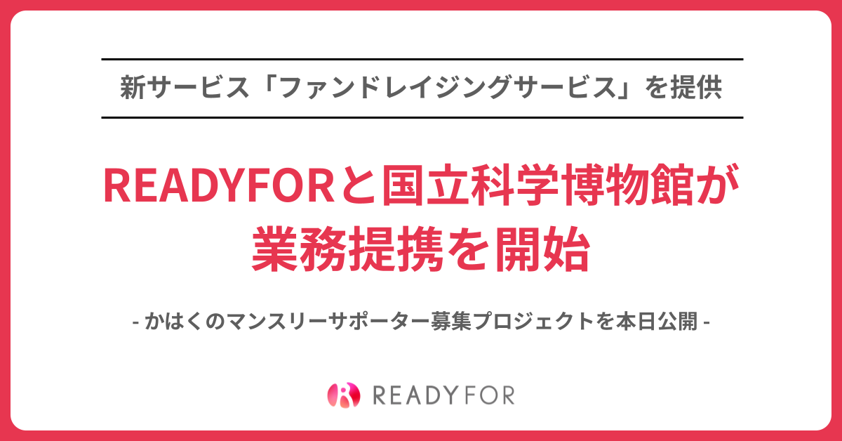 日本初・国内最大級のクラウドファンディングサービス「READYFOR」を運営するREADYFOR株式会社(本社:東京都千代田区、 代表:米良はるか)と国立科学博物館(館長:篠田 謙一)と業務提携を開始しました。