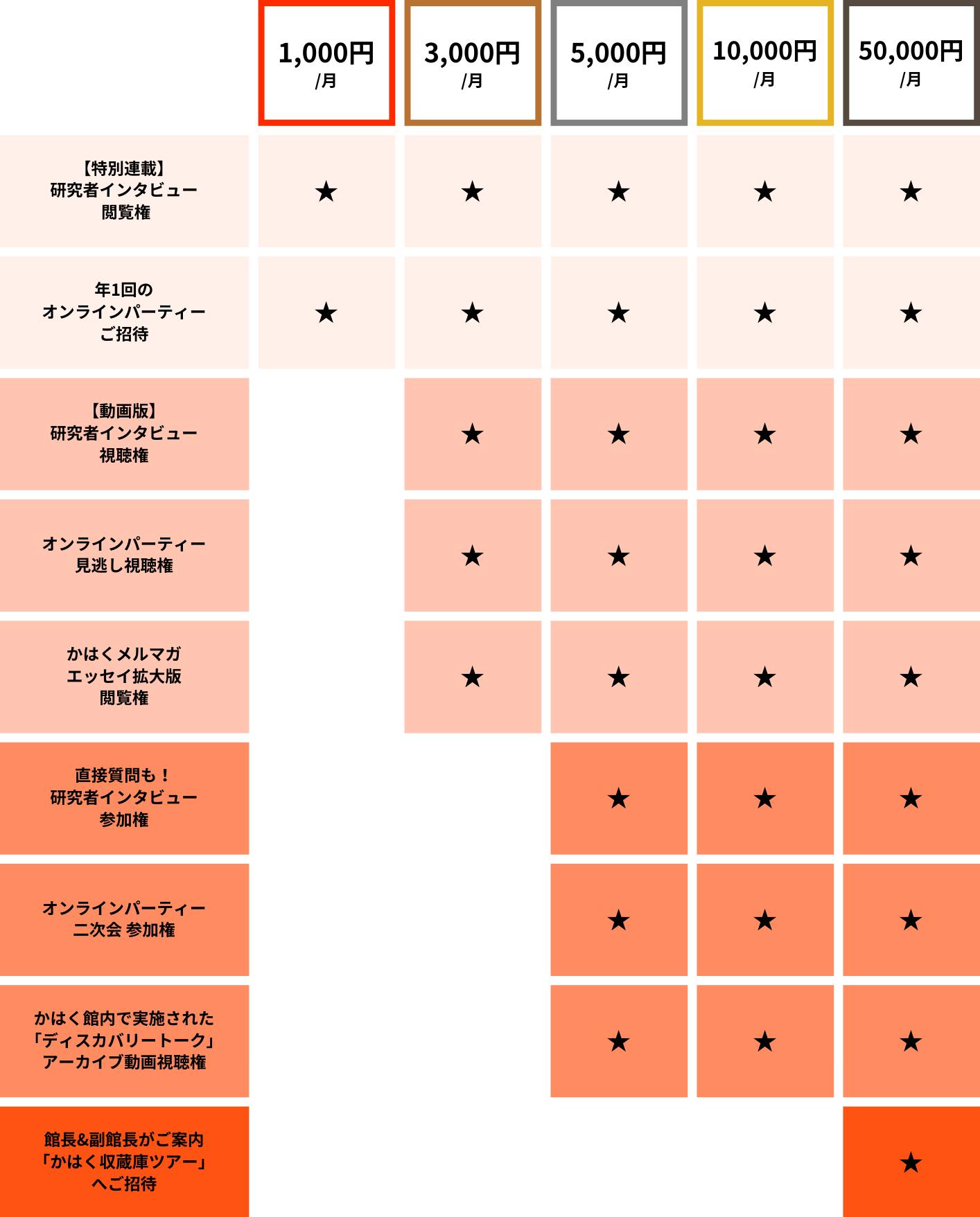 ・支援コース:月額1,000円 / 3,000円 / 5,000円 / 10,000円 / 50,000円