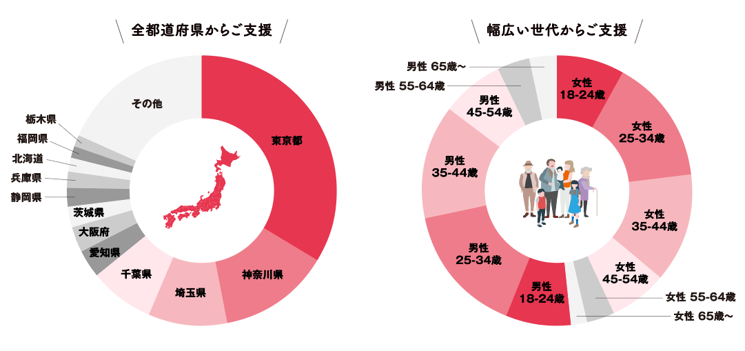 READYFORにて公開した国立科学博物館による「地球の宝を守れ|国立科学博物館500万点のコレクションを次世代へ」プロジェクトは、56,584名もの支援者の皆様から国内クラウドファンディング史上最高額となる916,025,000円のご支援が集まりました。全47都道府県から、10代〜60代以上まで幅広い世代からご支援をいただきました。