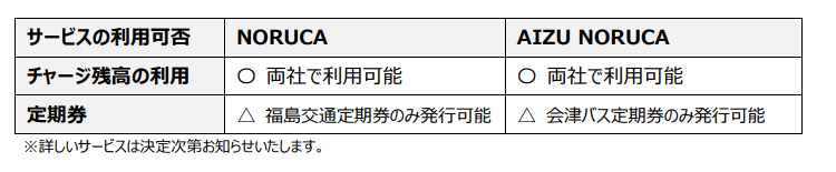 -IC定期券は、福島交通はNORUCA、会津バスはAIZU NORUCAに発行します。