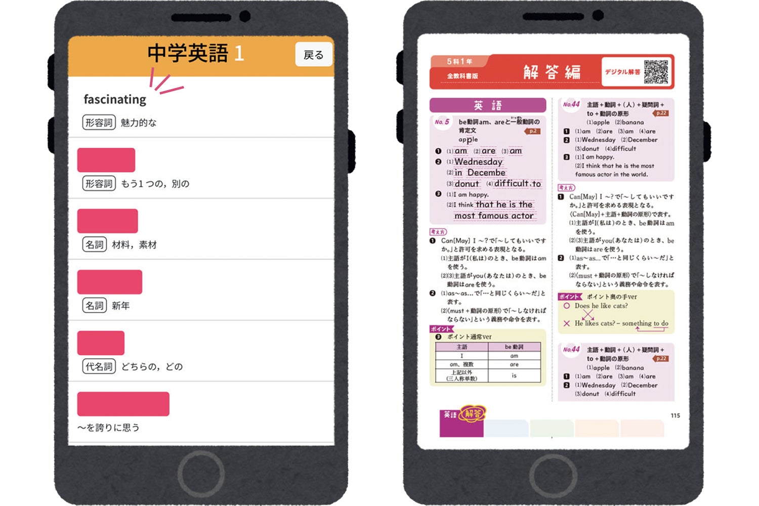 3. スマホ連携!便利な「デジタルツール」付き お手持ちのスマホを使って、デジタル上で赤シートのような形式で英単語・漢字・公式などを学習できます。さらに、デジタル上で解答画面が確認できるため、手軽に問題ページを確認しながらスムーズに丸付けができます。