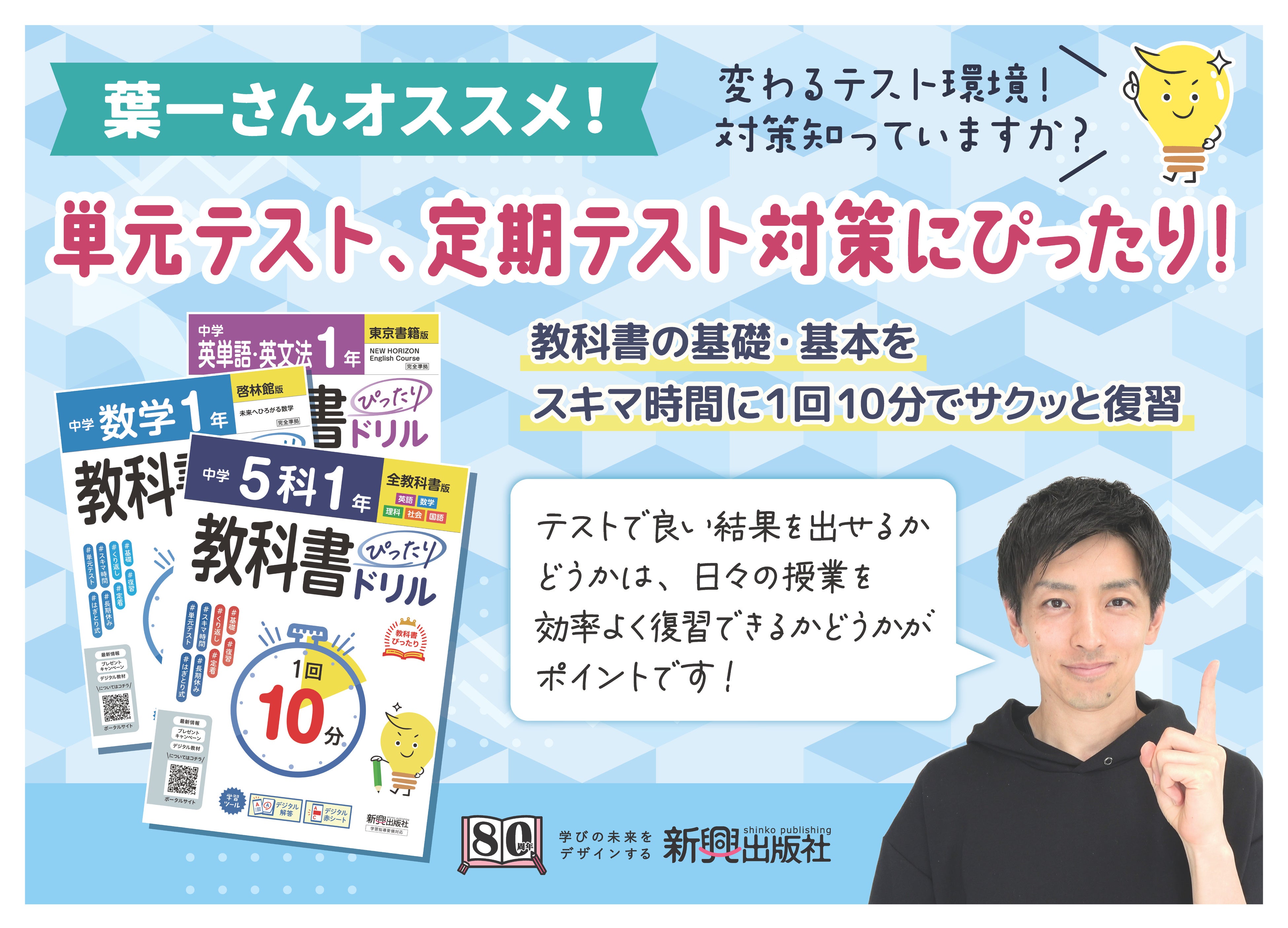 【業界初】忙しい中学生に朗報!1回10分・多様化するテストに対応した『中学 教科書ぴったりドリル』を新興出版社が新発売!