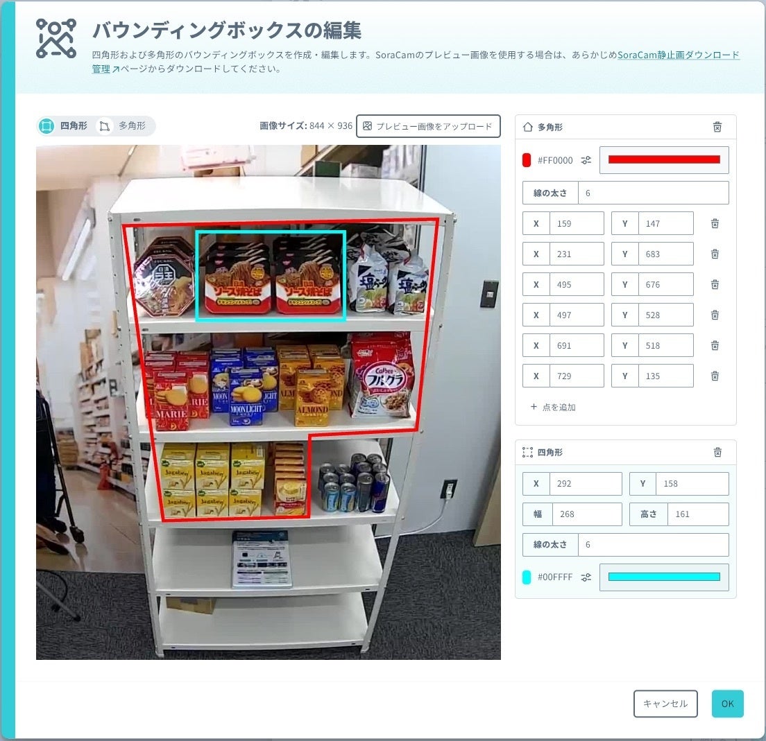 AIで分析するエリアの枠線設定(バウンディングボックス)を多角形対応に拡張することで角度のある映像でも柔軟に指定可能に