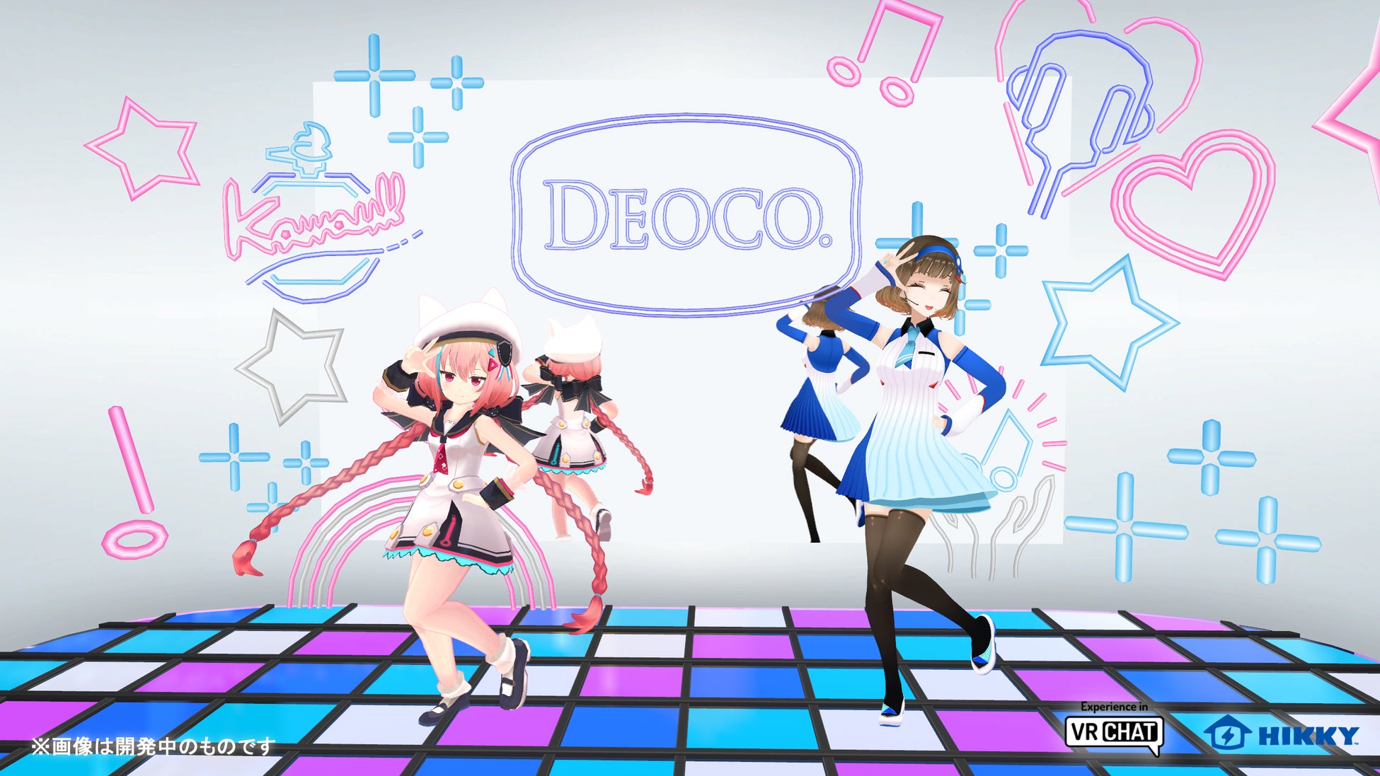 2Fのライブ会場に進む前には、ココロちゃんオリジナル楽曲「キラッとアイズ」の振り付けを自身のアバターで踊ることができる練習&フォトスポットコーナーも用意しています。