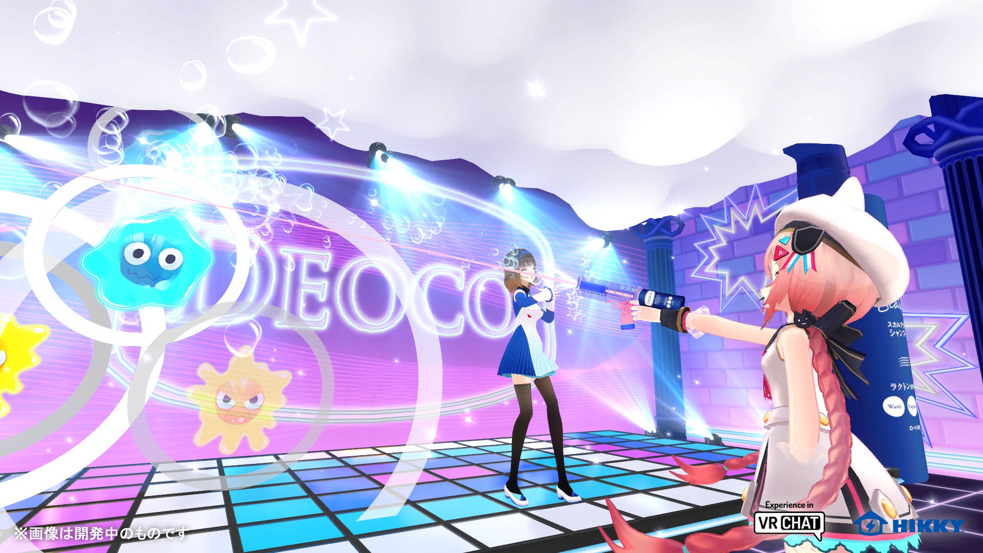 2Fへ移動すると、ココロちゃんのライブが始まります。ライブ中にどんどん発生するにおいモンスターを、DEOCO銃の泡でリズムよく撃ち倒そう! このシューティングリズムゲームは最大4名でプレイ可能。ゲーム終了後は自分が何匹のにおいモンスターを退治したかも表示されます。