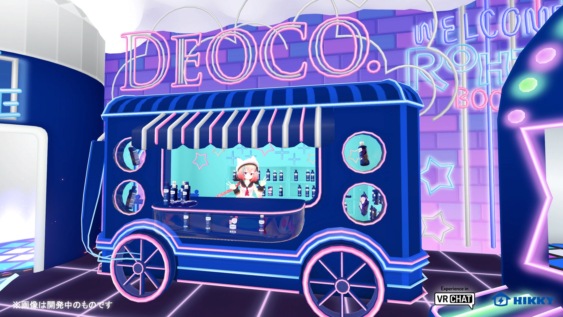 本イベントに、ロート製薬株式会社(以下、ロート製薬)の5度目の連続出展が決定!ブース内では、ロート製薬のニオイケアブランド「デオコ®」のアイテムを用いて、においモンスターを退治するシューティングリズムゲームが楽しめるほか、Vket限定デザインのボディクレンズシートを含む、ここでしか買えないリアル商品セットを販売します。