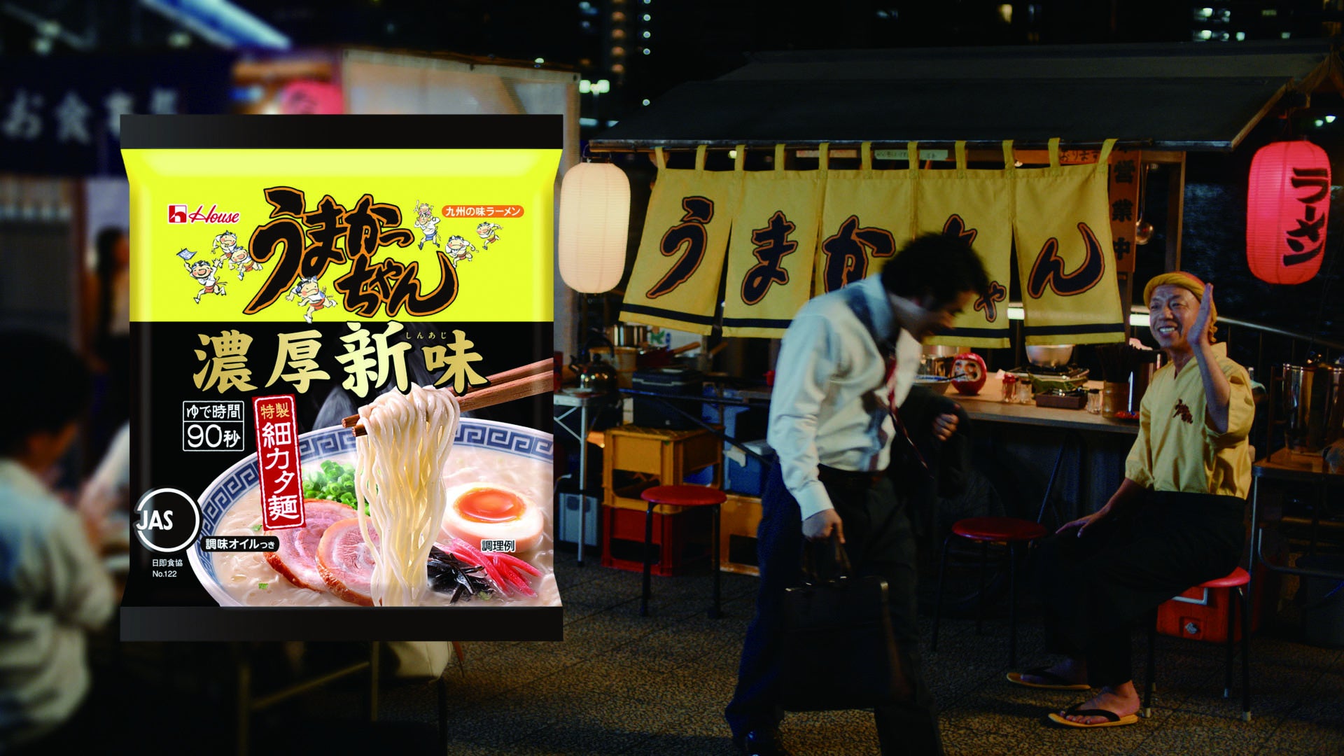 小峠英二さんが屋台の店主に!「うまかっちゃん」<濃厚新味>新TVCM「90秒ください」篇を11月1日よりオンエア