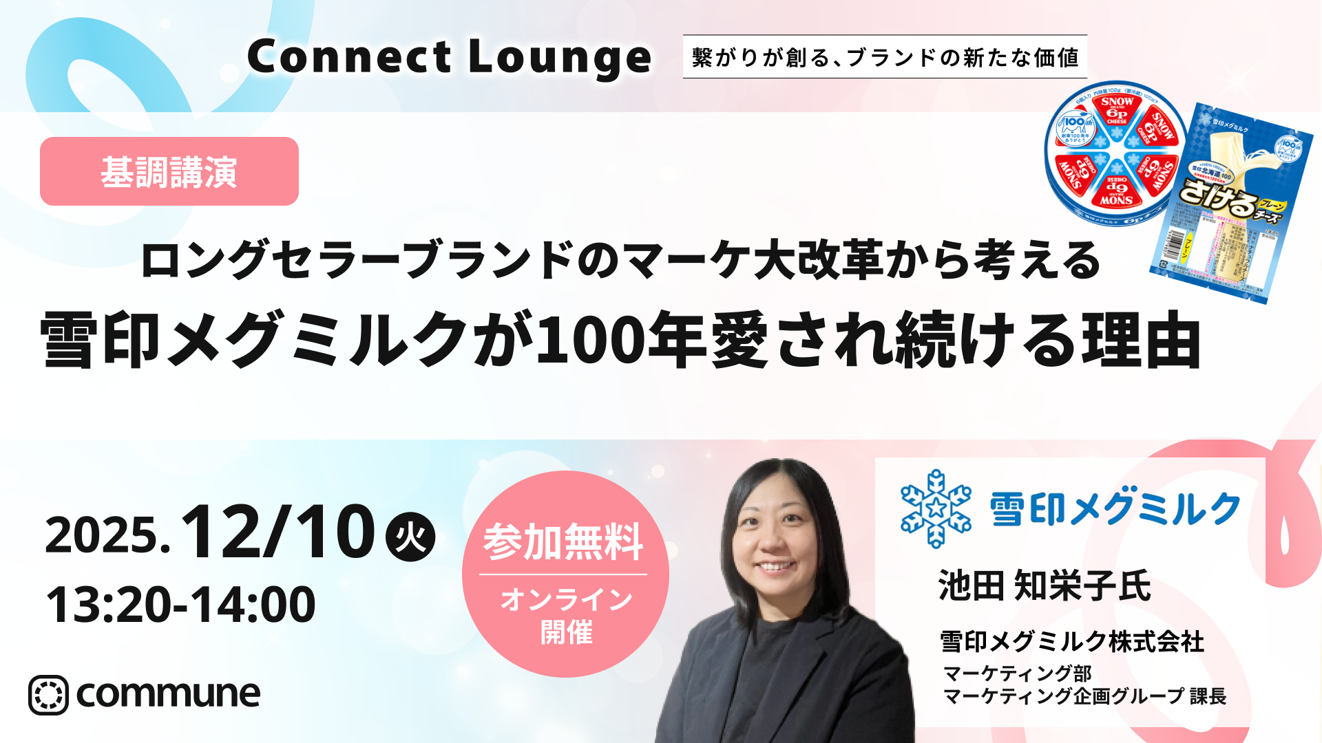 相互交流で信頼を育む「Commune」を提供するコミューン株式会社は、オンラインカンファレンス「Connect Lounge 〜繋がりが創る、ブランドの新たな価値〜」(以下、Connect Lounge)を2025年12月10日(水)、11日(木)に開催することをお知らせします。本日より、参加申込みを開始いたしました。
