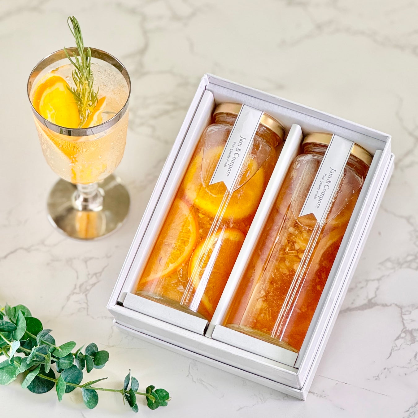 樽正自慢の『蜂蜜レモネード』と『生姜レモン茶』の詰め合わせギフトです。国産の柑橘果物を使用した詰め合わせギフトは、味はもちろんのこと、見た目もお楽しみいただける華やかなギフトとなっています。夏は炭酸水や冷水で3~5倍に希釈して、お好みの甘さで爽やかなドリンクをお楽しみください。