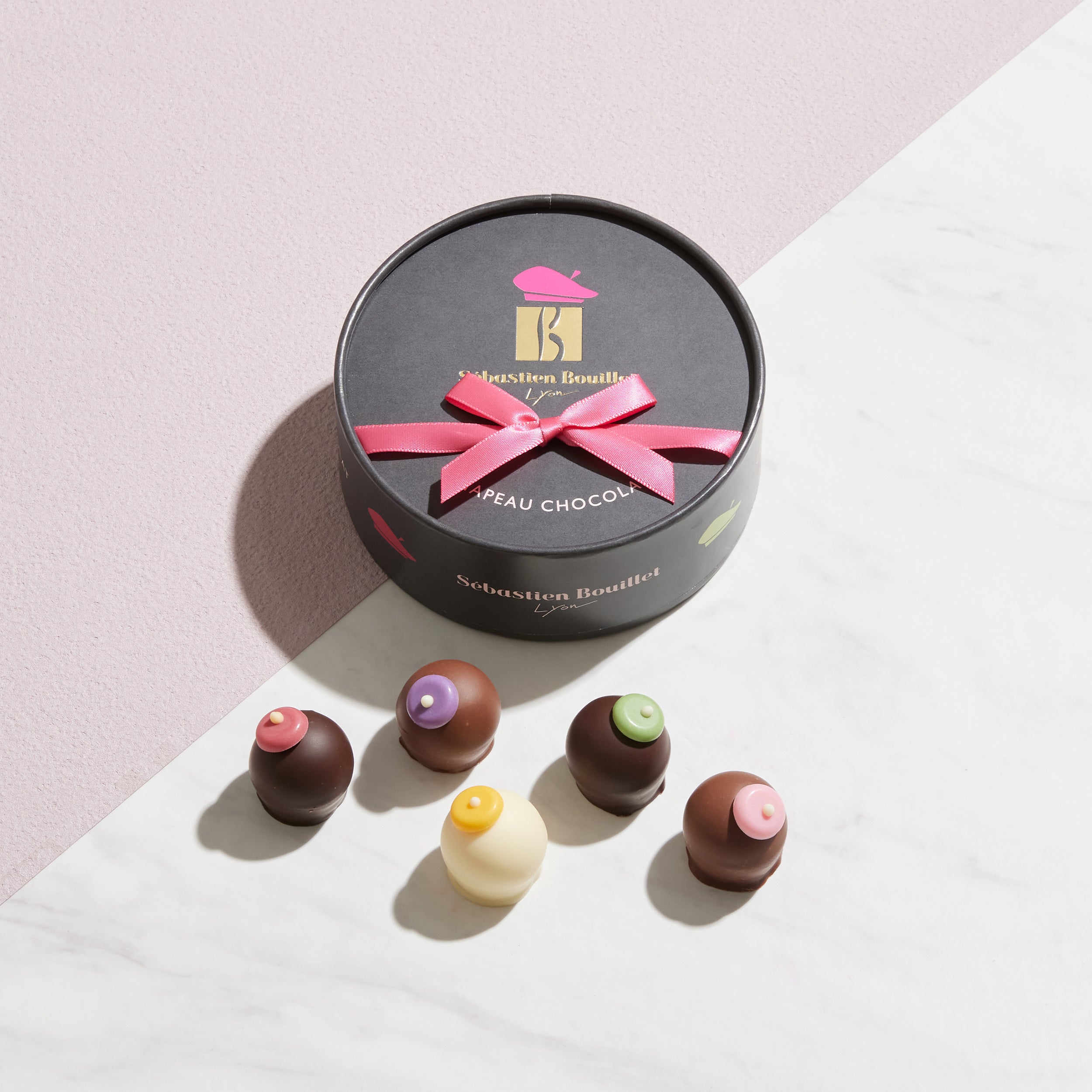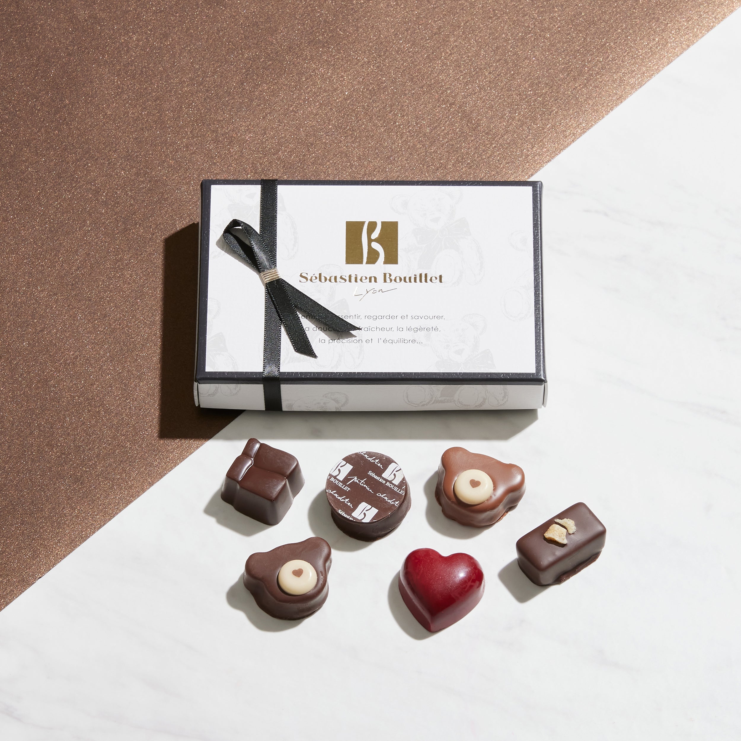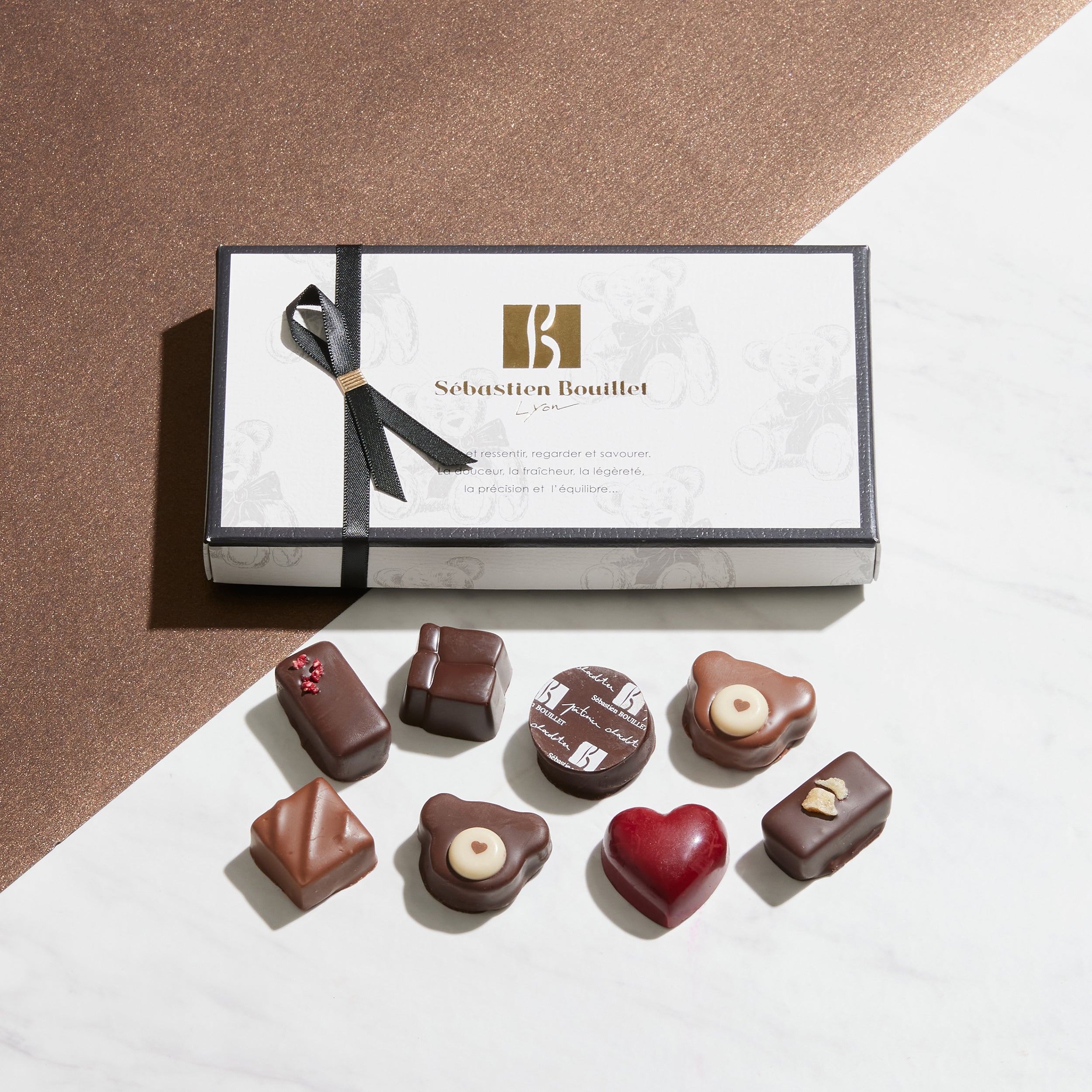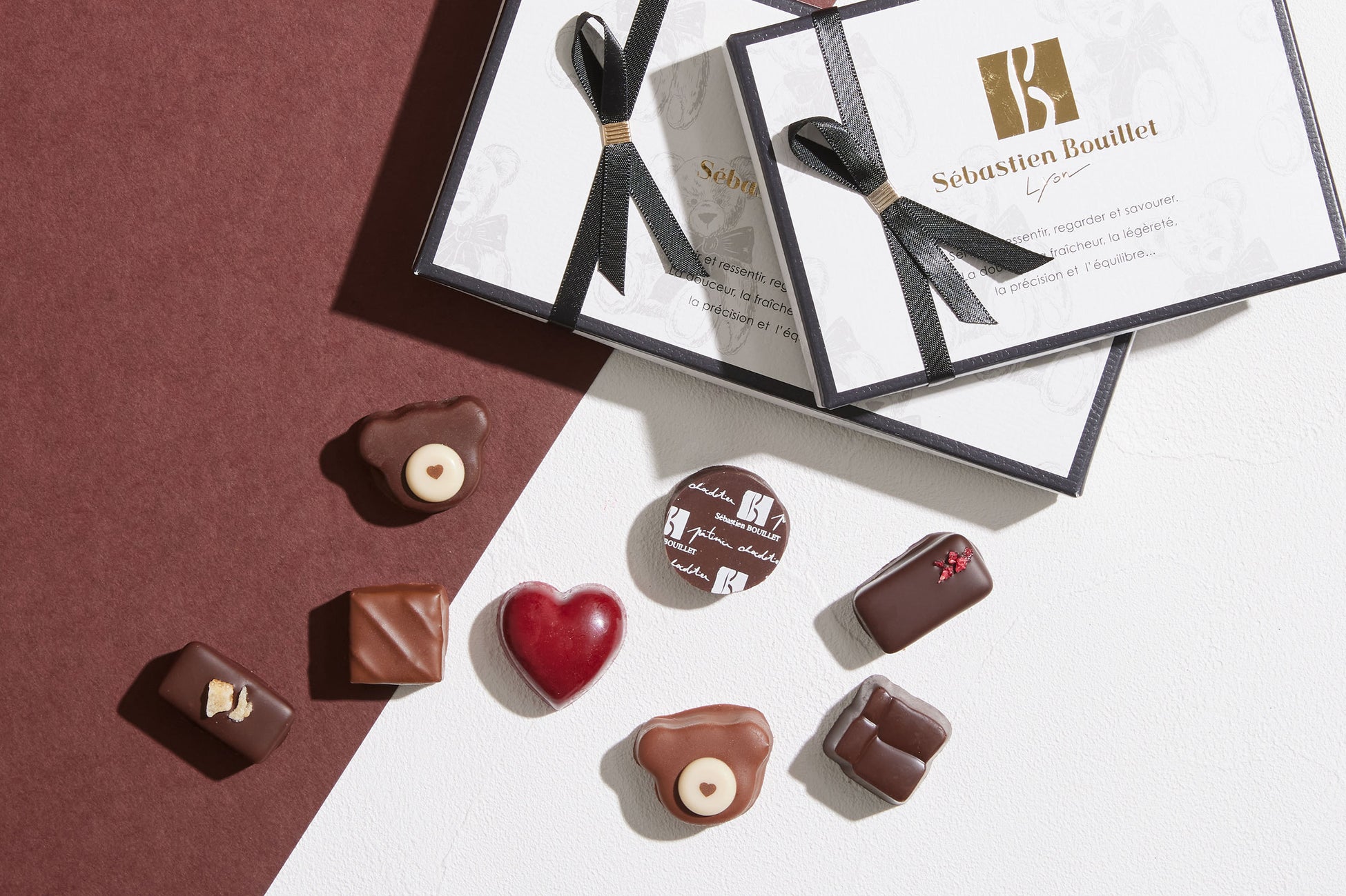 ベレー帽をテーマにした新作の「シャポーショコラ」や、愛するリヨンと日本をショコラで表現した「リヨンショコラ」、可愛らしいくま型ショコラが特徴的な「ヌヌースショコラ」、毎年人気の「ルージュ ア レーブル」等、セバスチャンならではの遊び心たっぷりのラインナップをお届けします。