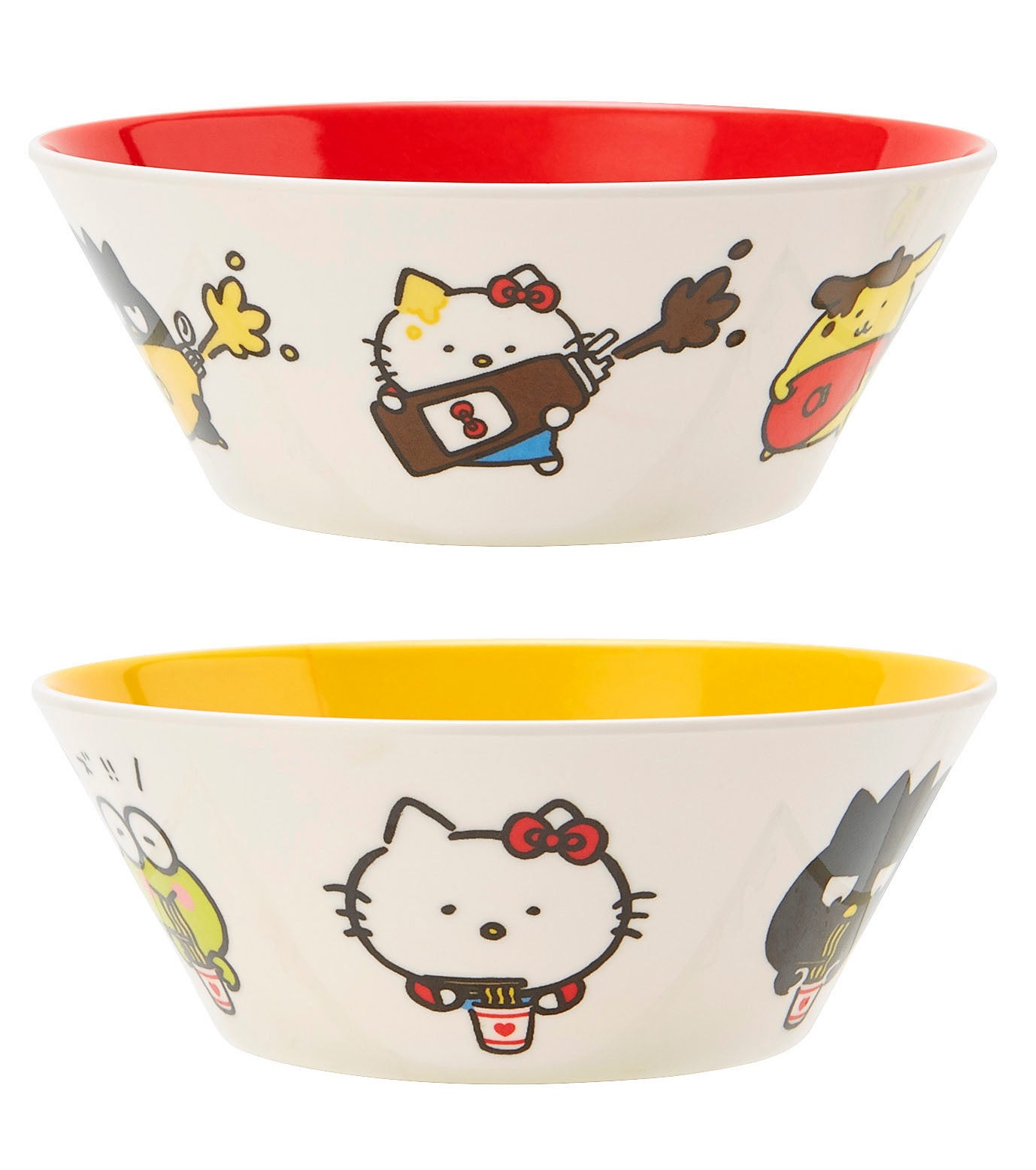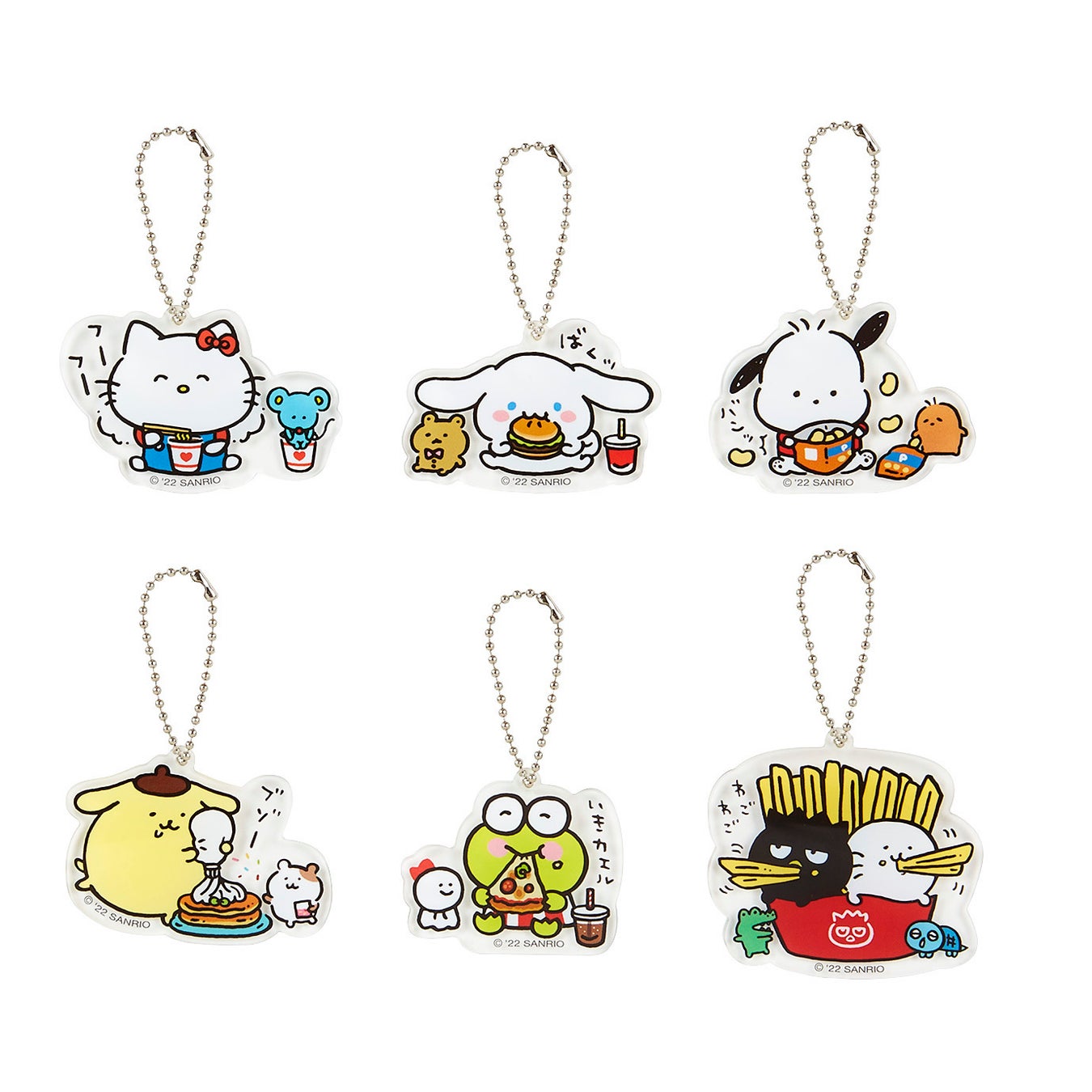 6キャラクター(ハローキティ、シナモロール、ポチャッコ、ポムポムプリン、バッドばつ丸、けろけろけろっぴ)が登場します。ちょっぴりシュールな食べ顔やキュートなポーズがポイントです。主にサンリオショップで発売するサンリオオリジナル商品のデザインです。
