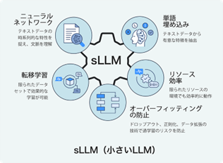 sLLM(小さいLLM/small Large Language Models)は、コンパクトなサイズの自然言語処理モデルで、特定のタスクや応用に特化しています。これらのモデルは、限られたリソースを持つ環境や特定の用途に適した自然言語処理の能力を提供します。