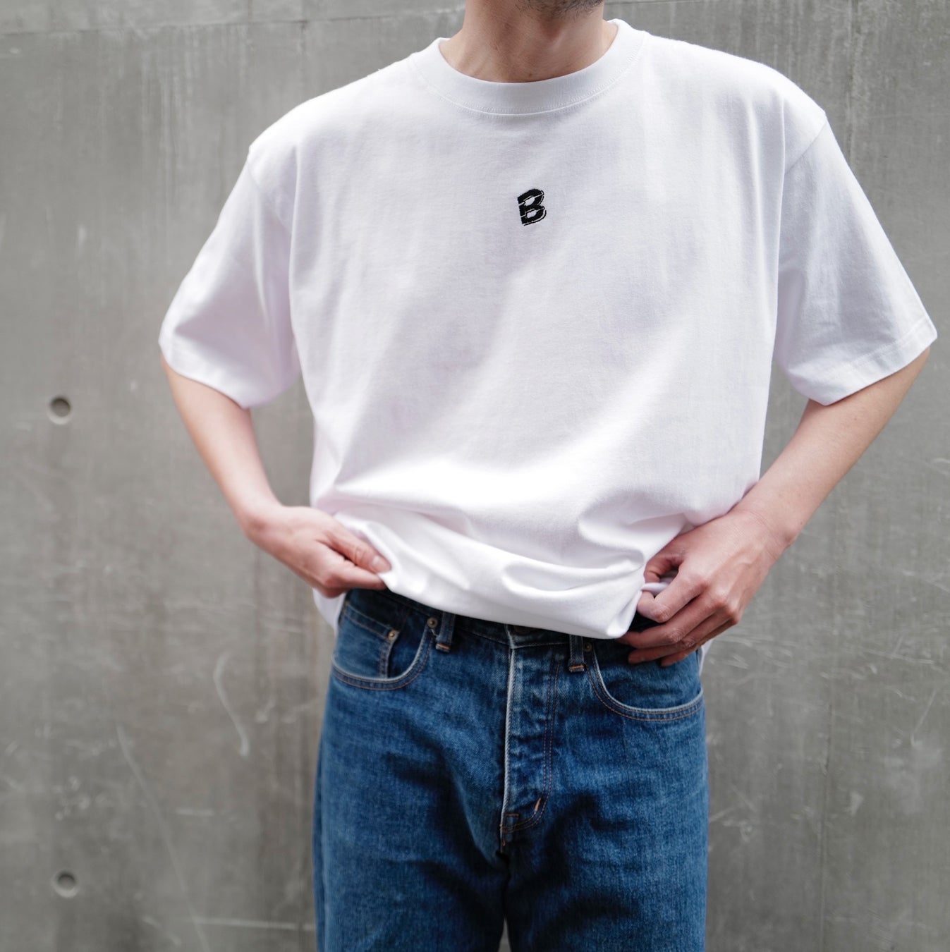 胸元にBを刺繍したTシャツ。生地は6.2オンスと厚手で一枚でも着られます。